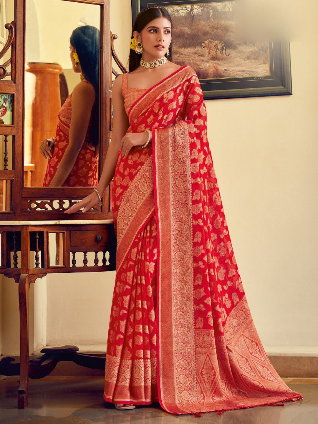 Red and Maroon color Saree in Georgette fabric with Printed work