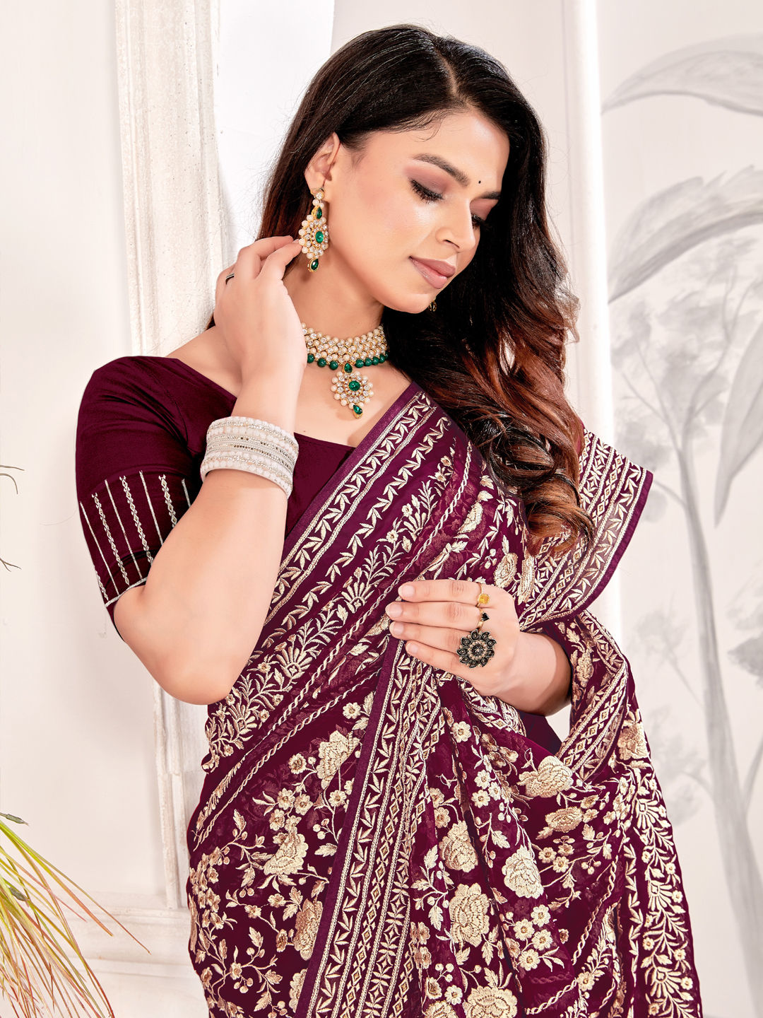 Red and Maroon color Saree in Georgette fabric with Embroidered, Resham, Zari work