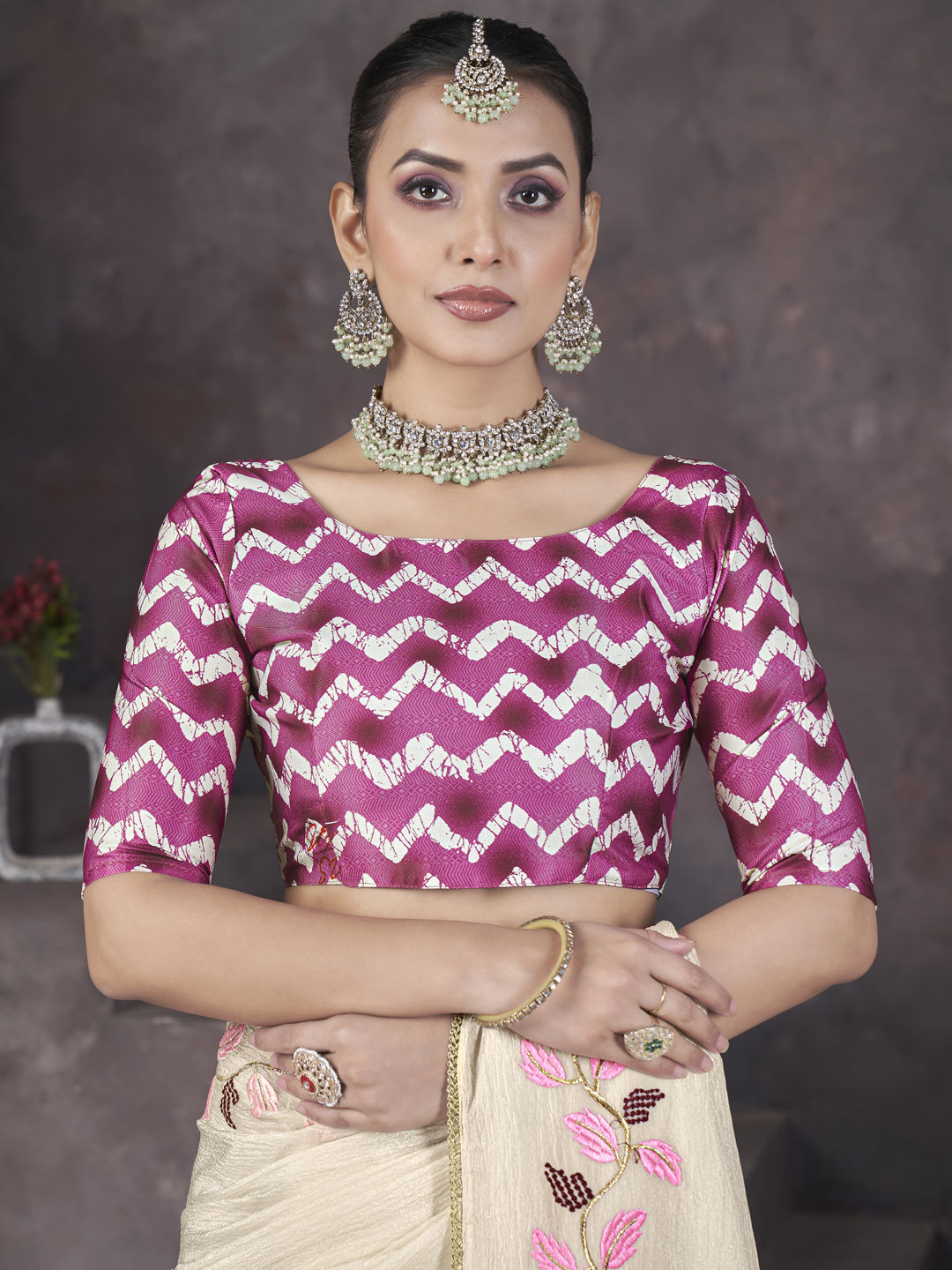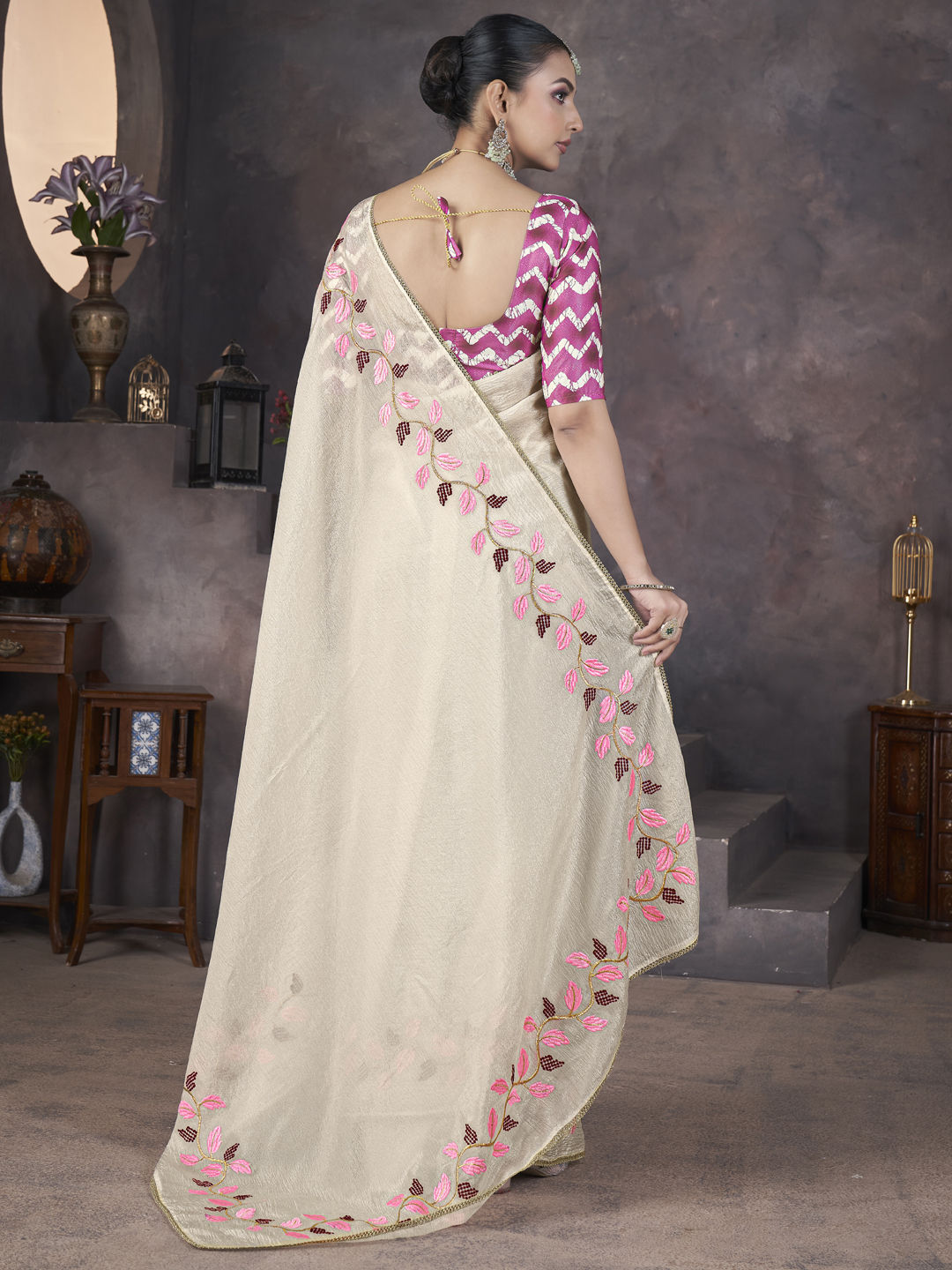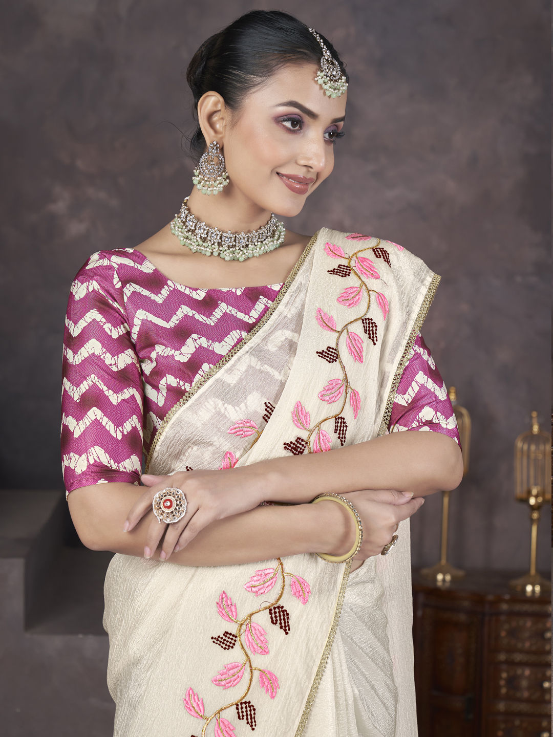 White and Off White color Saree in Georgette fabric with Embroidered, Resham, Thread work