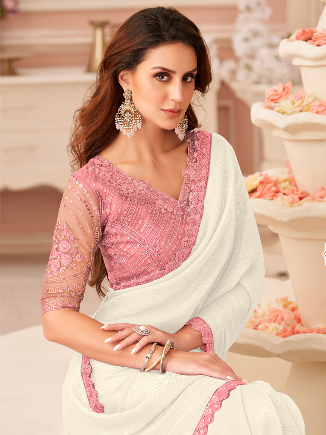 in White and Off White with Embroidered work