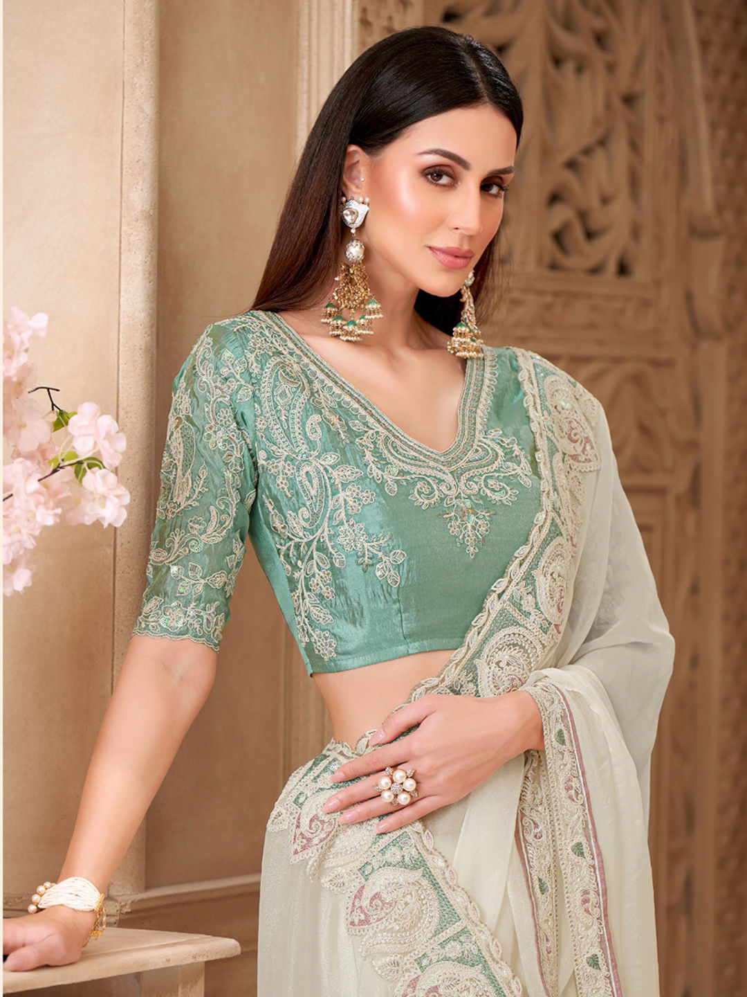 White and Off White color Saree in Georgette fabric with Embroidered, Sequence work