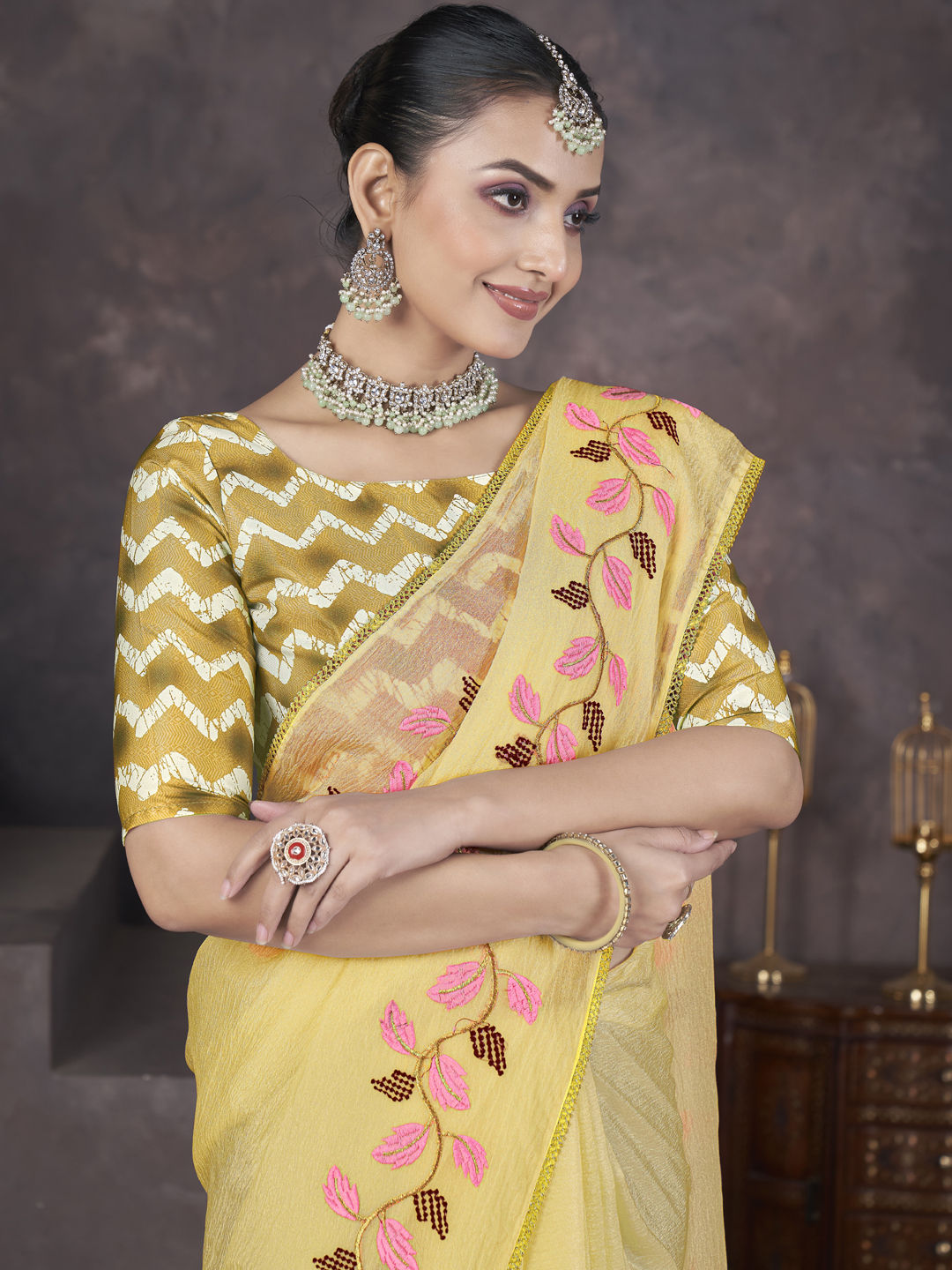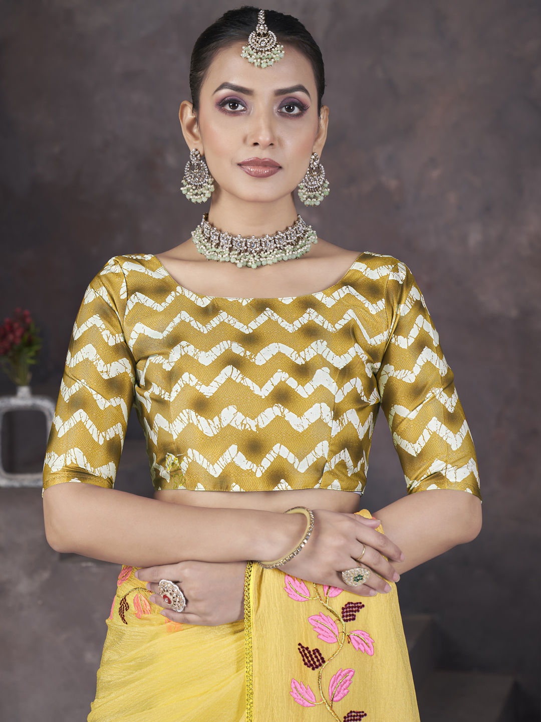 in Yellow with Embroidered work