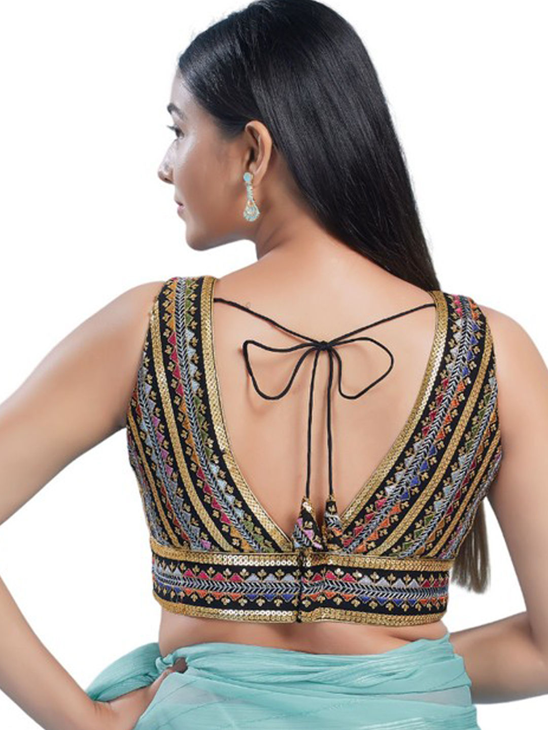 Black and Grey color Blouse in Georgette fabric with Embroidered, Sequence, Thread, Zari work