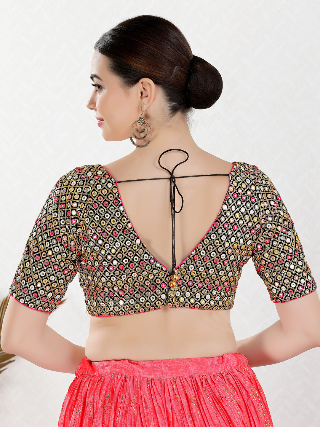 Black and Grey color Blouse in Georgette fabric with Mirror, Thread work