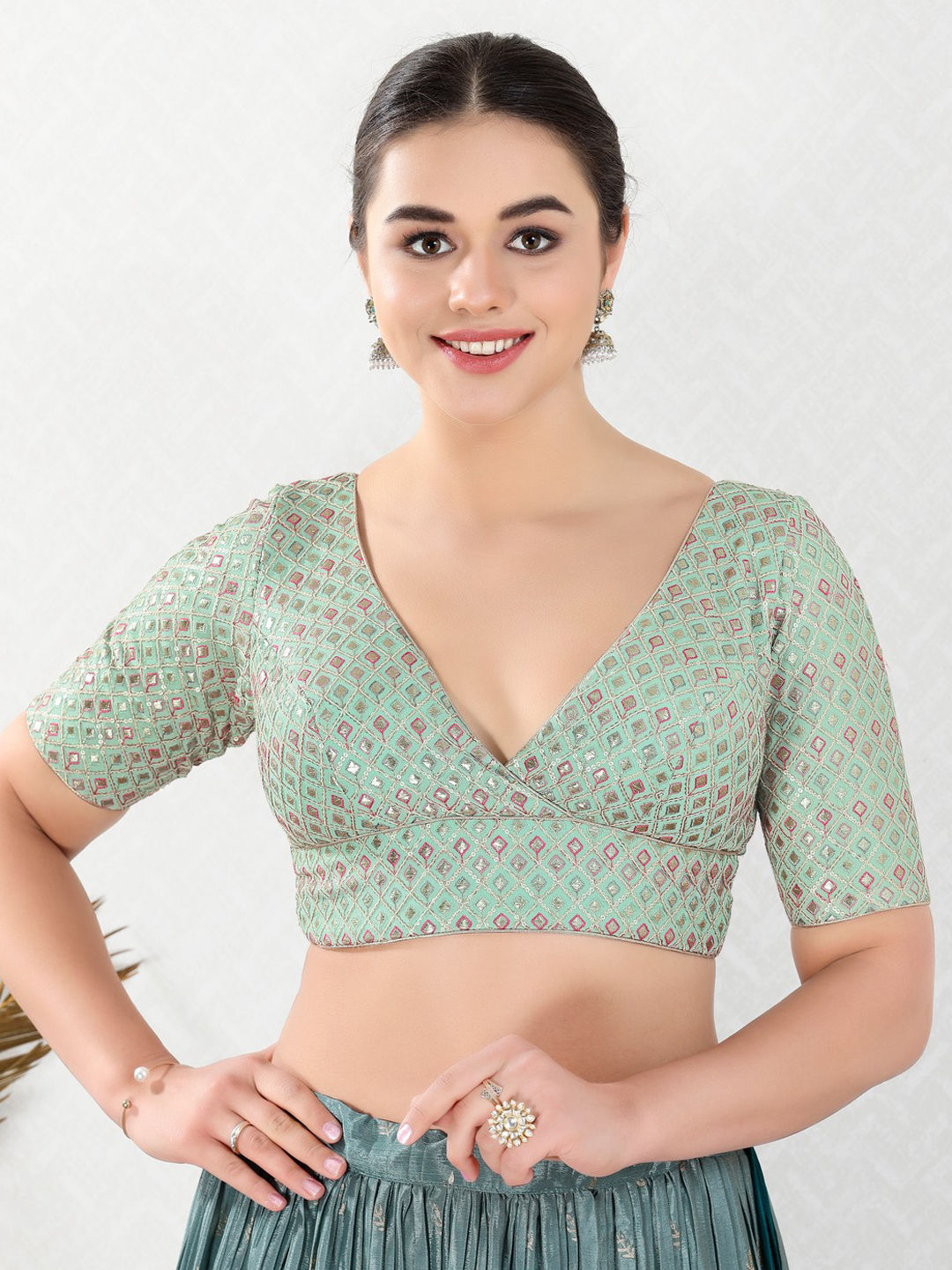 Green color Blouse in Georgette fabric with Embroidered, Sequence, Thread work