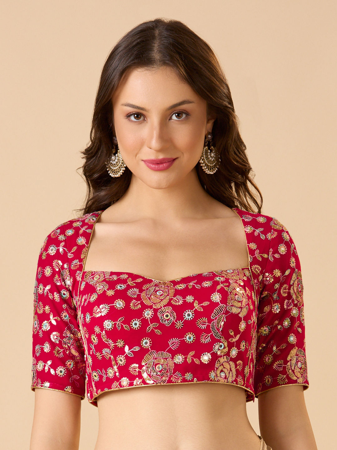 Tissue Festive Blouse in Red and Maroon with Sequence work