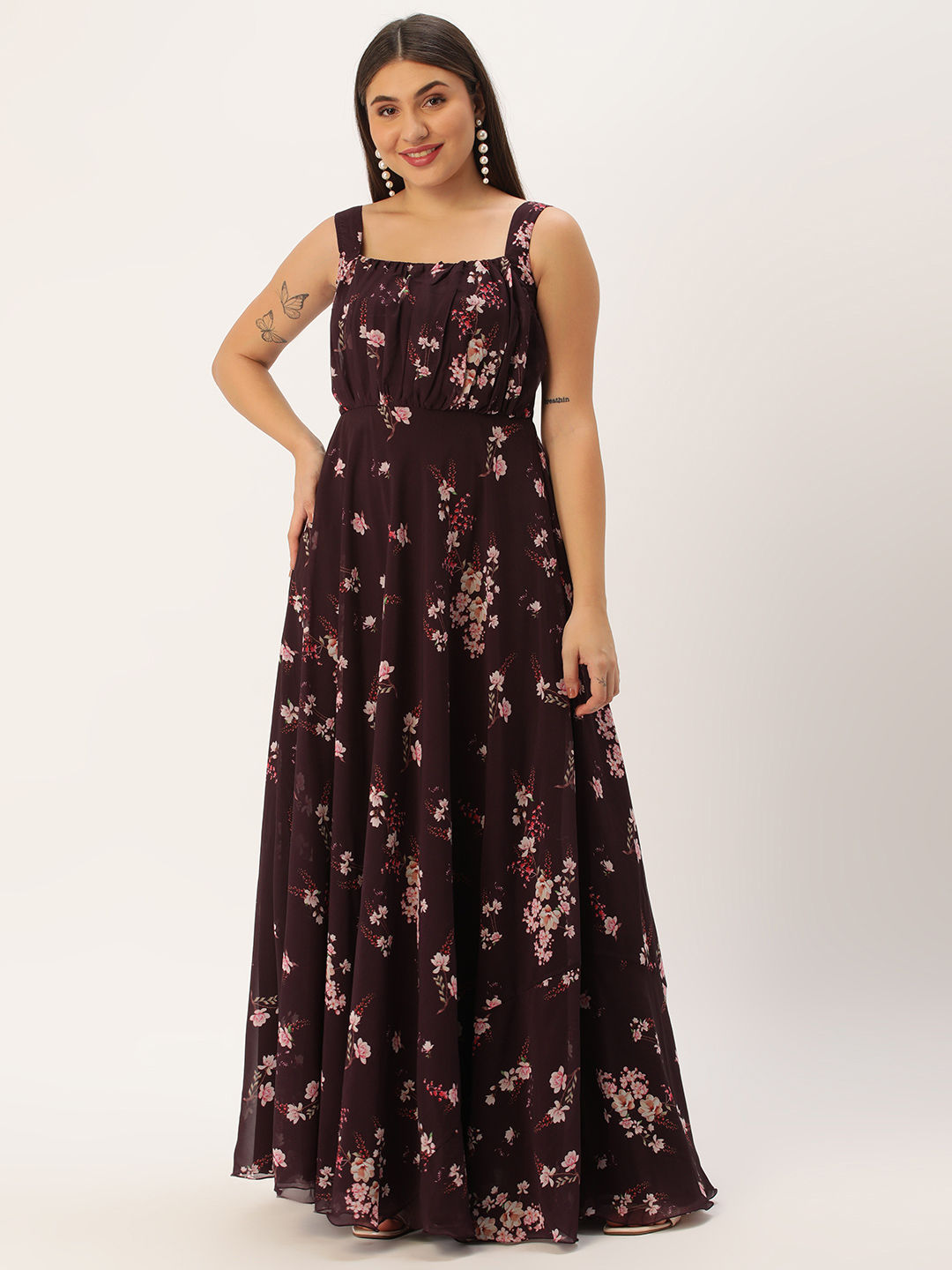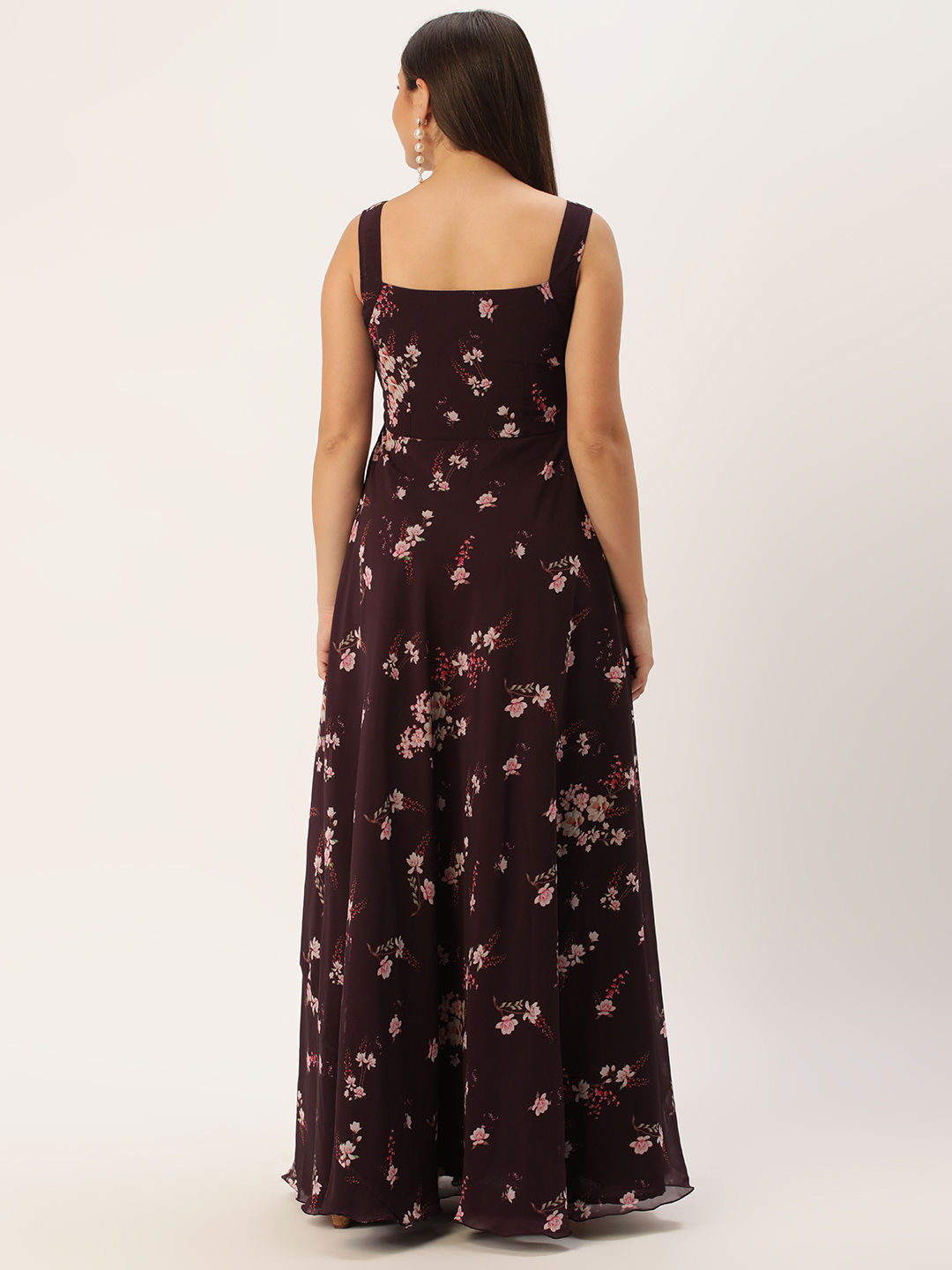 Purple and Violet color Gown in Georgette fabric with Floral work