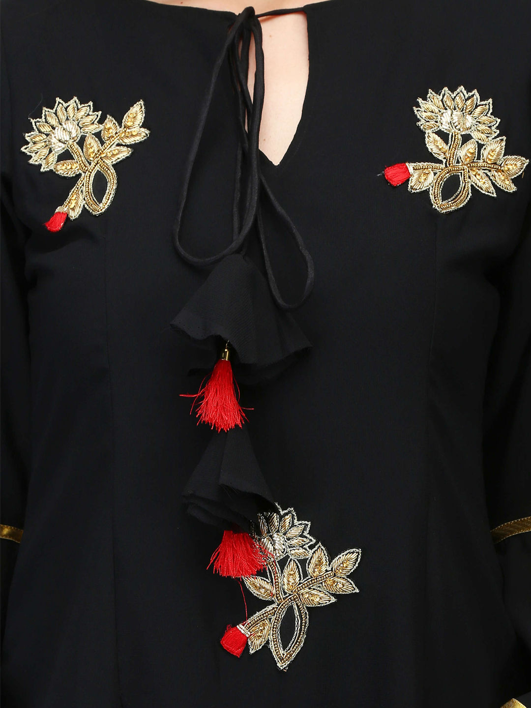Black and Grey color Kurti in Georgette fabric with Dabka, Resham, Sequence, Stone, Thread work