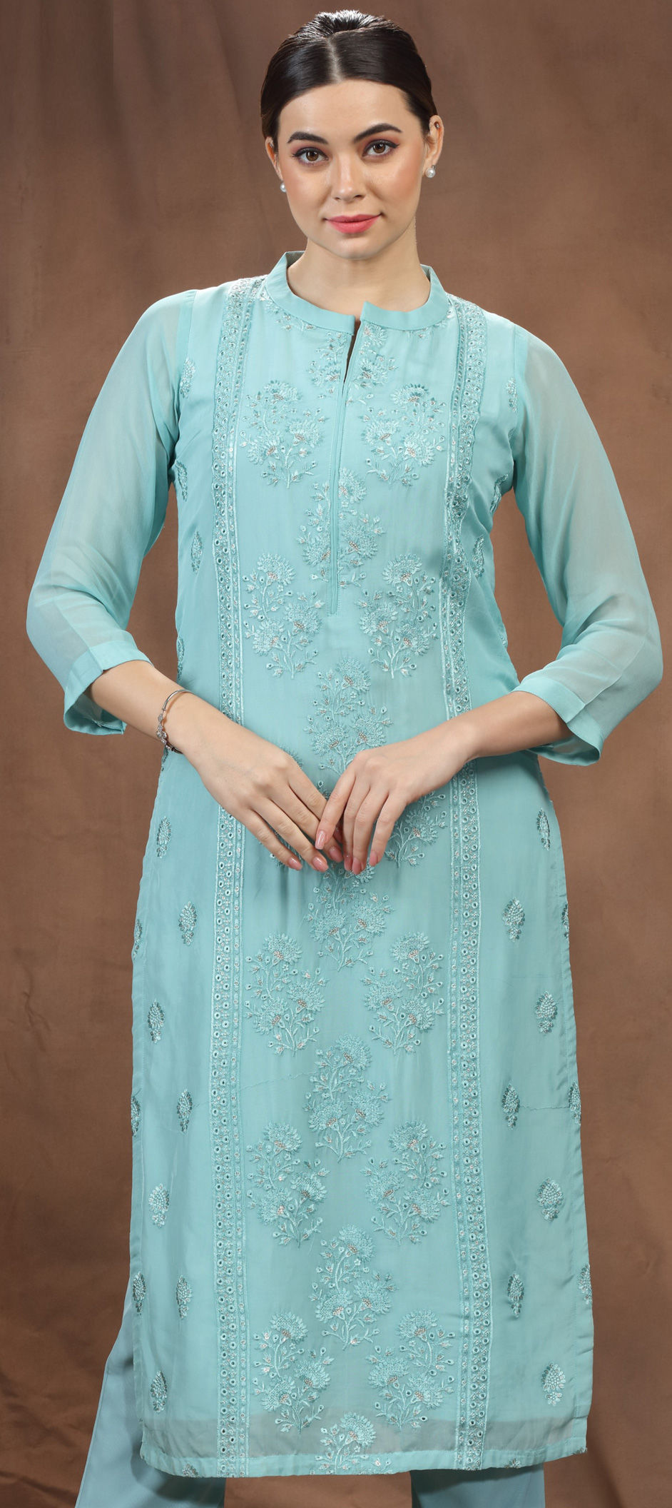 Blue color Kurti in Georgette fabric with Embroidered, Resham, Sequence, Thread work