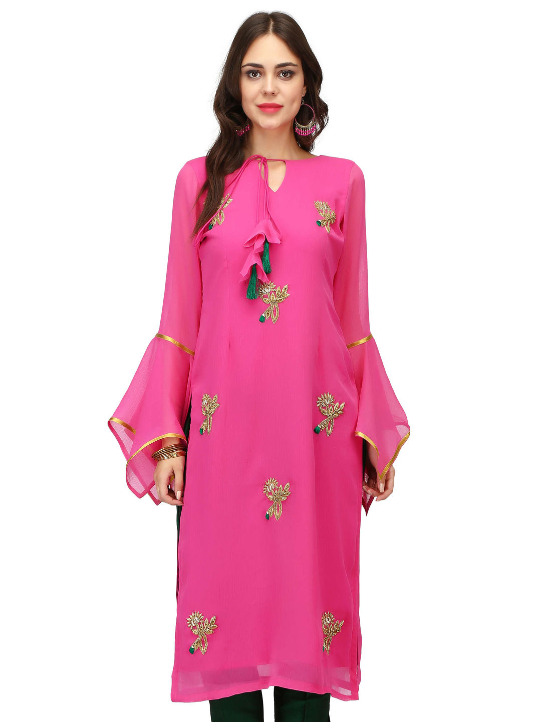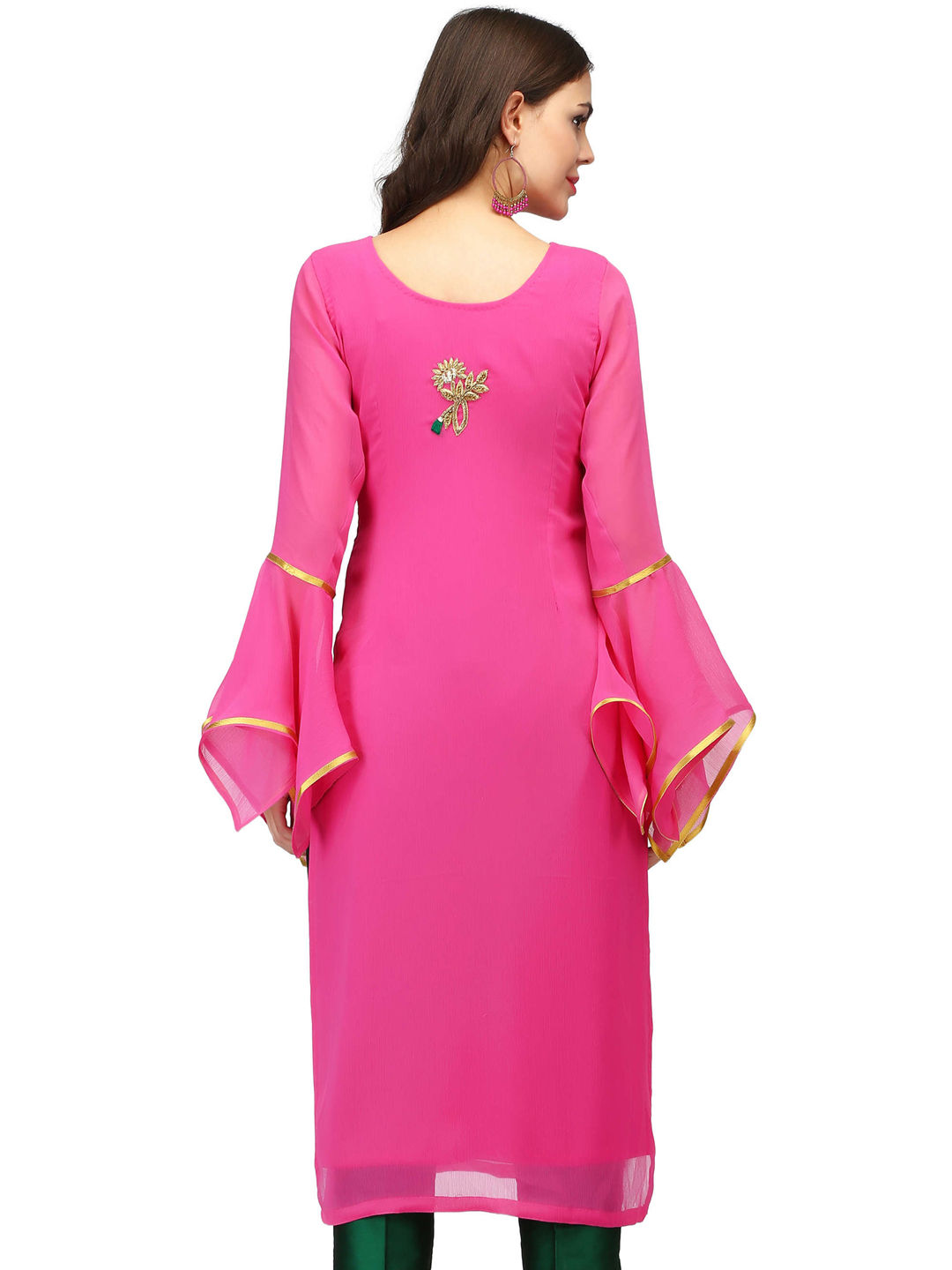 Pink and Majenta color Kurti in Georgette fabric with Dabka, Resham, Sequence, Stone, Thread work
