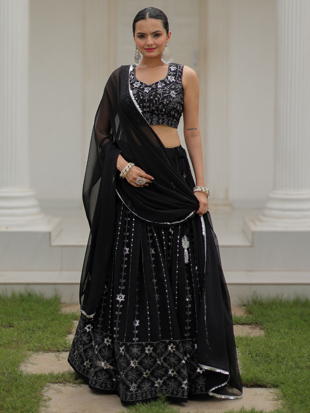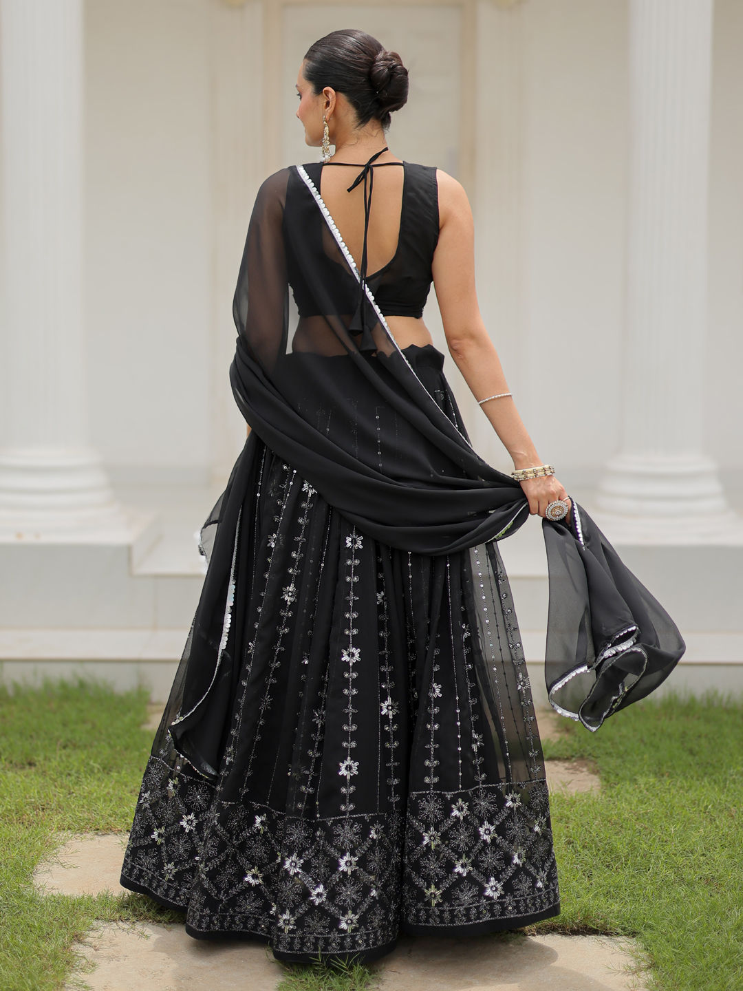 Black and Grey color Lehenga in Georgette fabric with Embroidered, Sequence, Thread work
