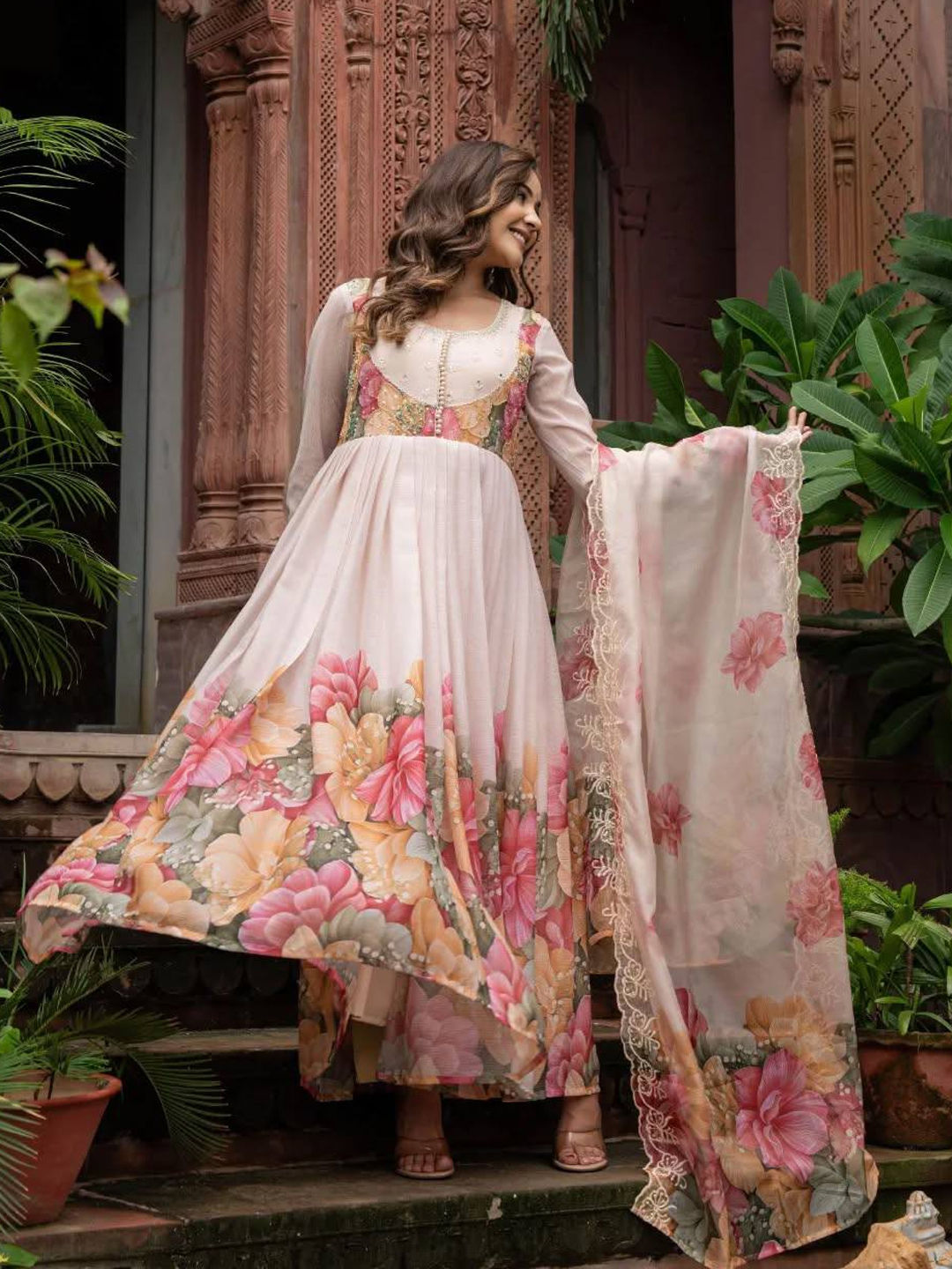 Organza Silk Festive Salwar Kameez in Multicolor with Printed work