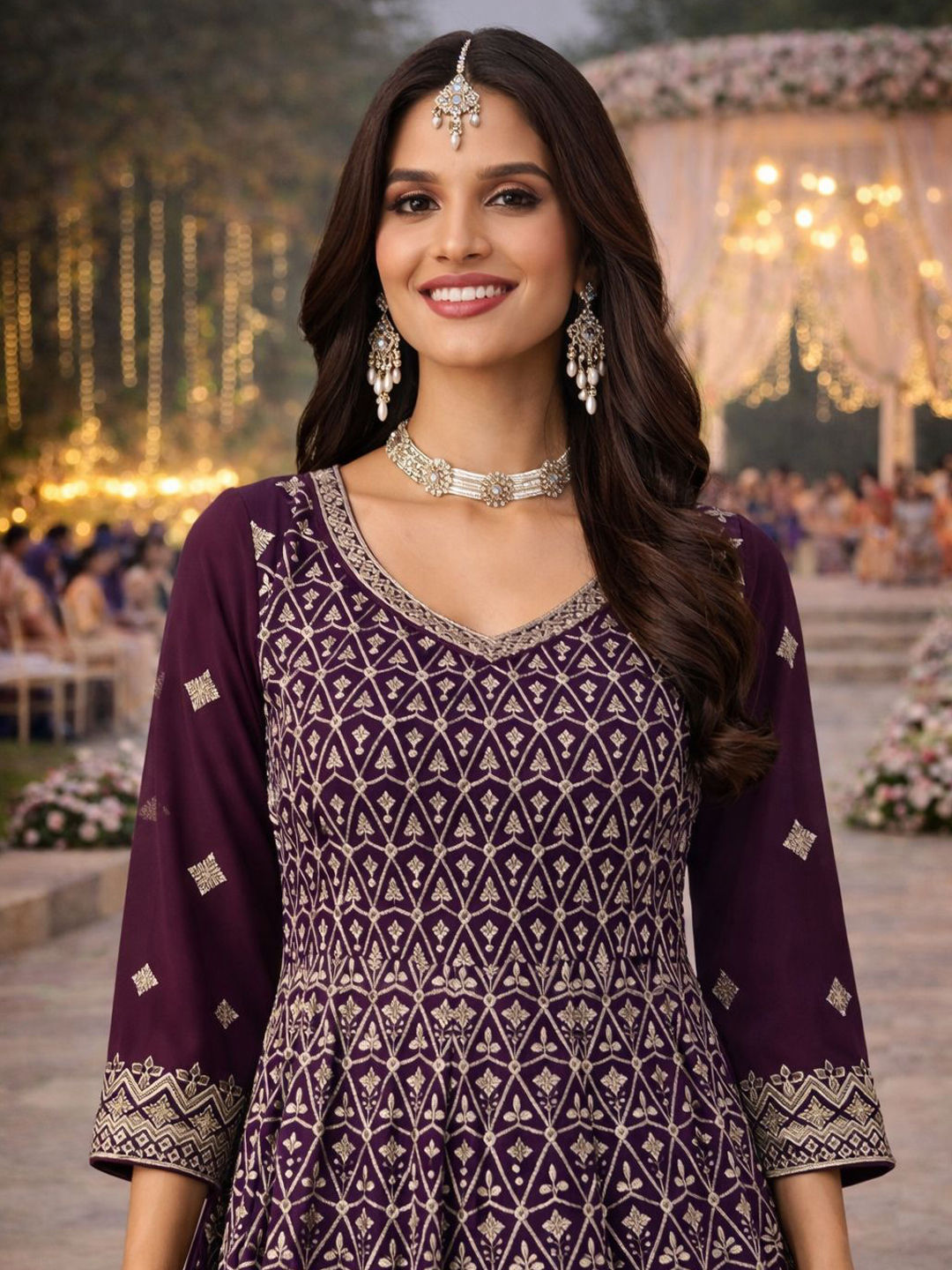 Purple and Violet color Salwar Kameez in Georgette fabric with Embroidered, Thread work