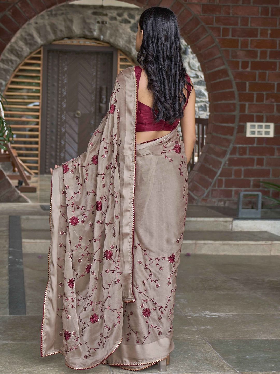 in Beige and Brown with Weaving work