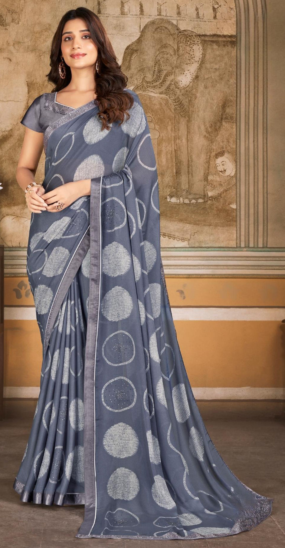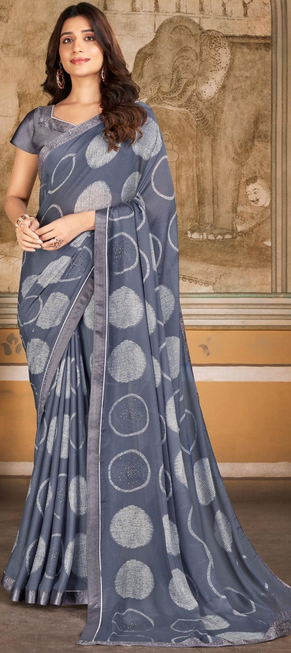 Black and Grey color Saree in Georgette fabric with Digital Print work