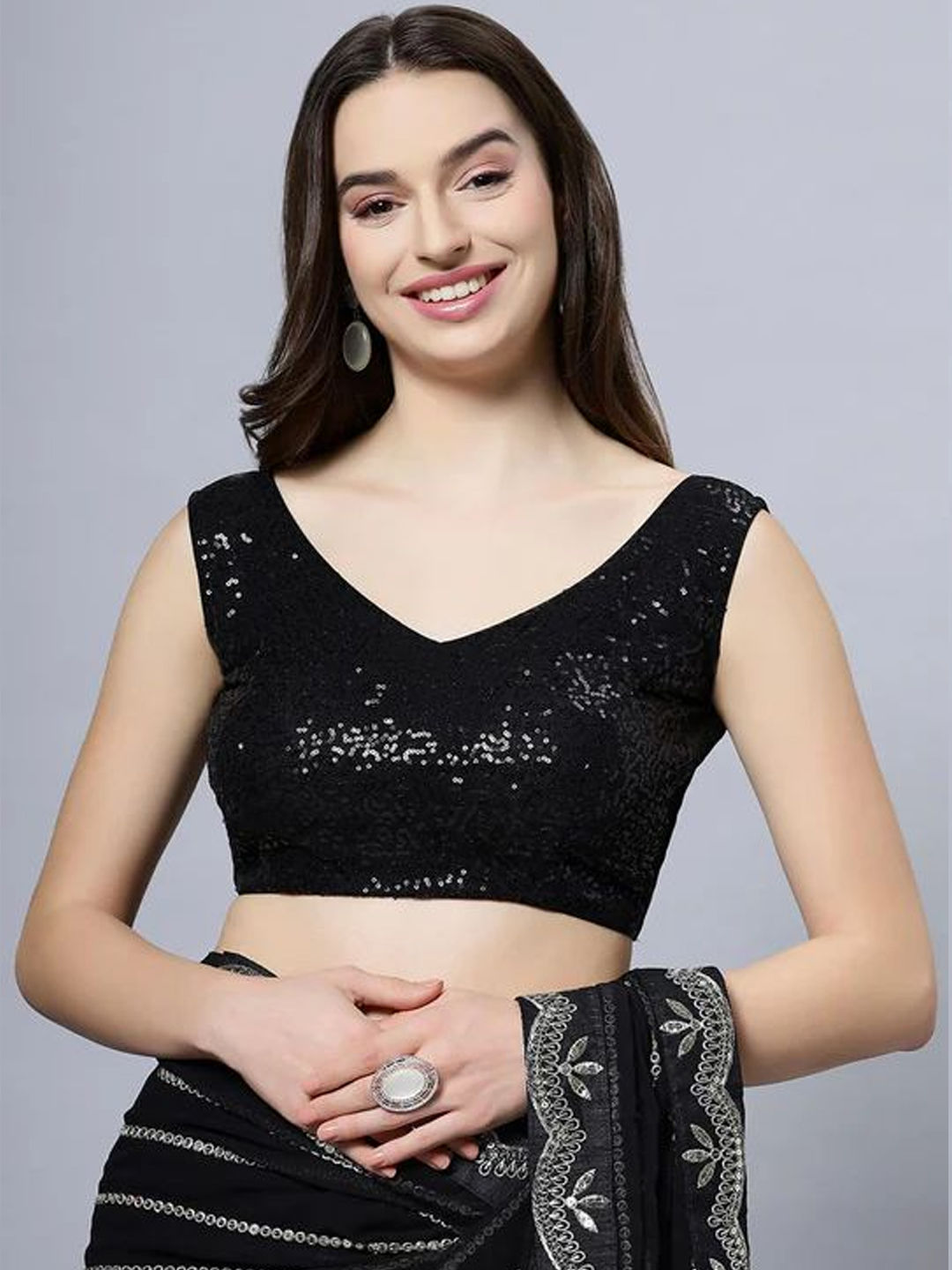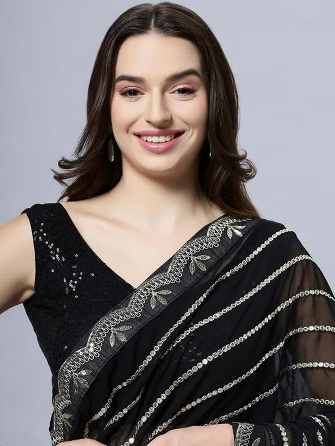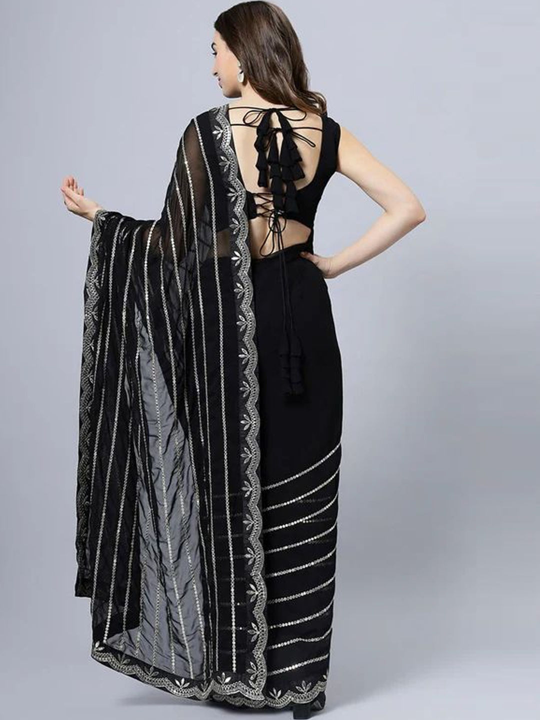 Black and Grey color Saree in Georgette fabric with Embroidered, Sequence, Thread work