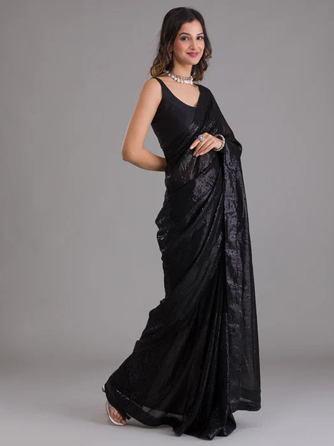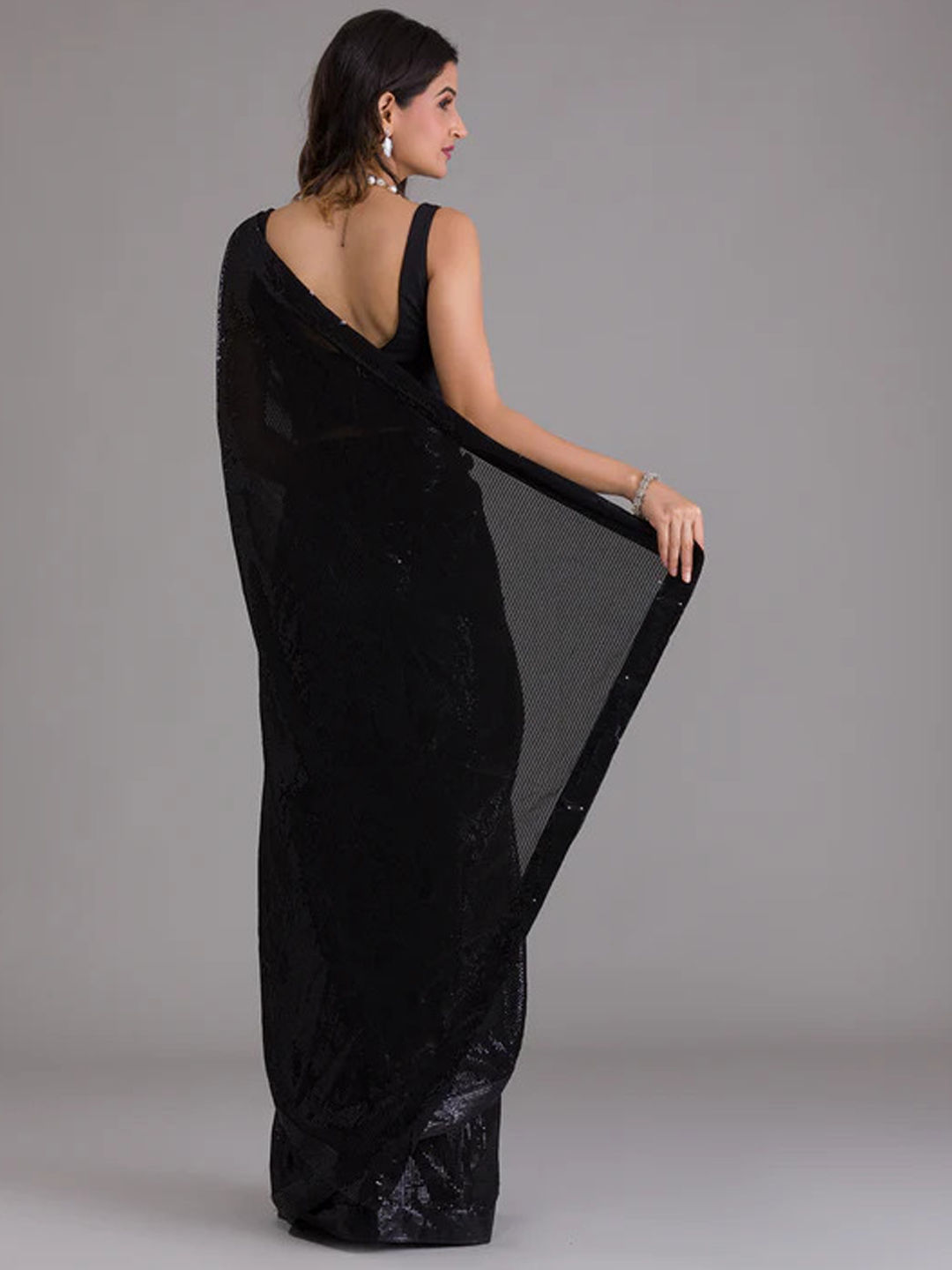 Black and Grey color Saree in Georgette fabric with Sequence work
