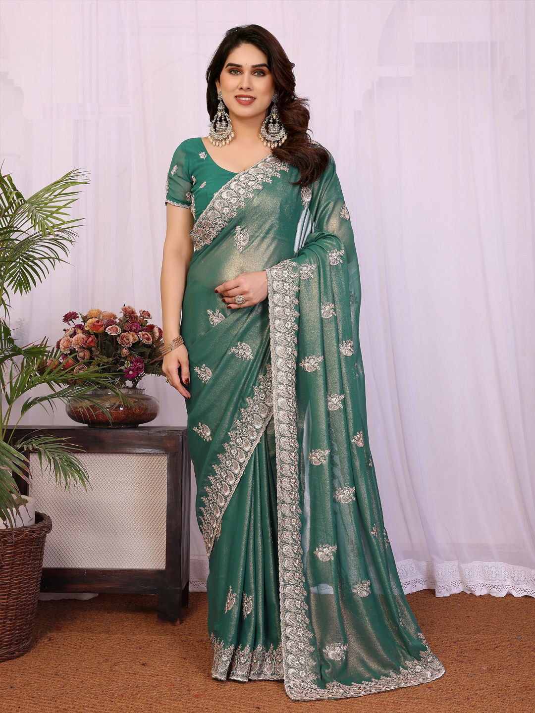 Blue color Saree in Georgette fabric with Embroidered, Resham work
