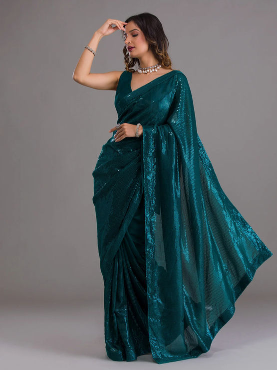 Georgette Party Wear Saree in Black and Grey with Sequence work