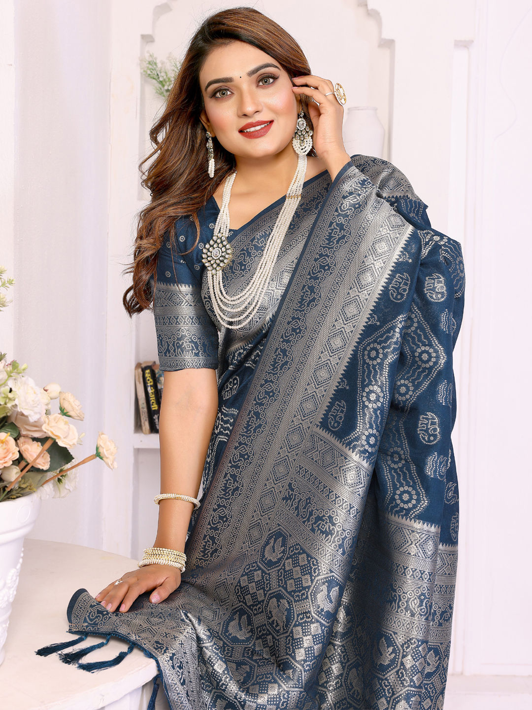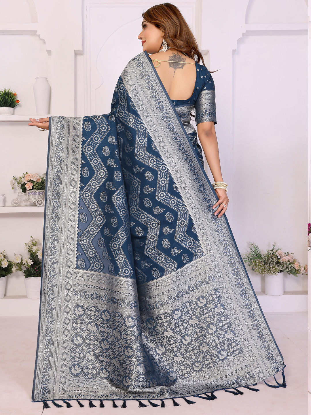 Blue color Saree in Georgette fabric with Lehariya, Weaving, Zari work
