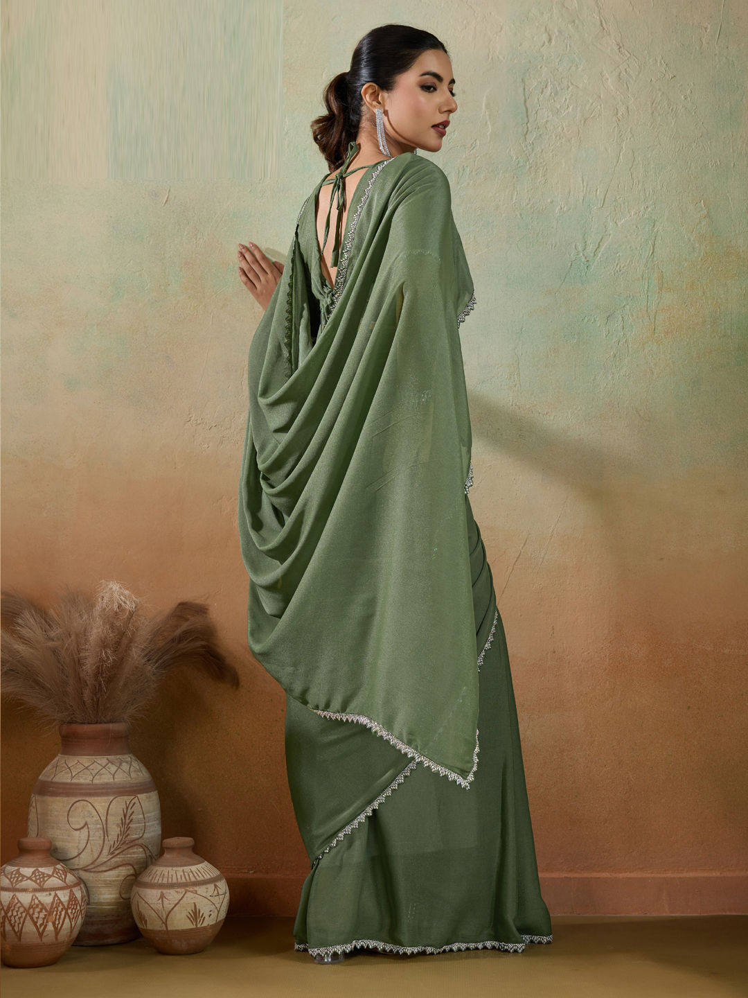 Georgette Party Wear Saree in Purple and Violet with Lace work