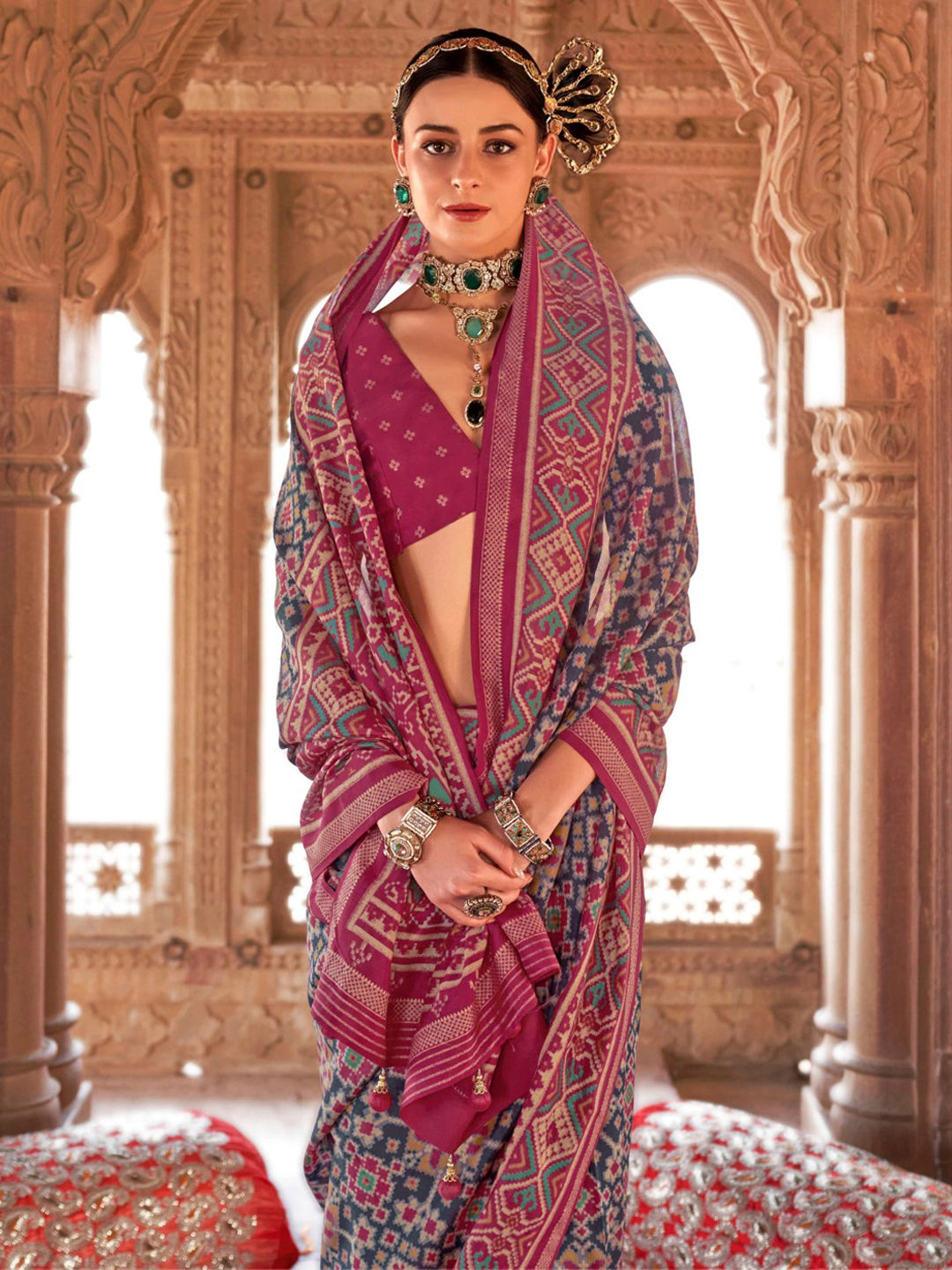Georgette Festive Saree in Pink and Majenta with Printed work