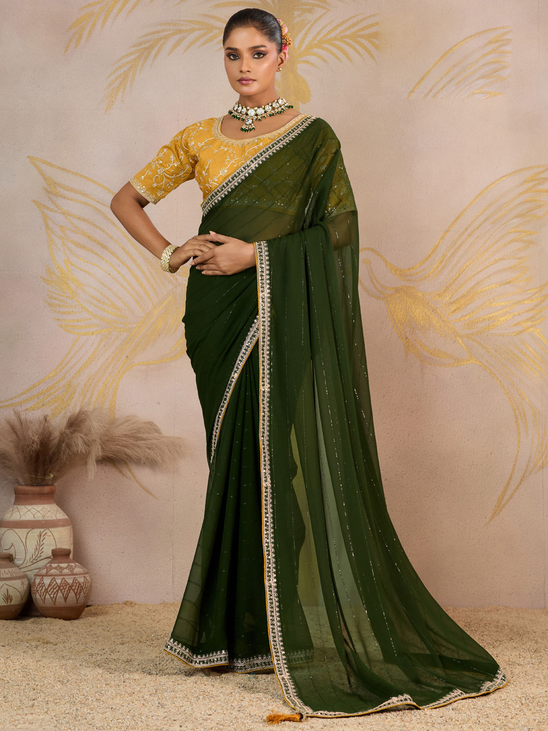 in Green with Zari work