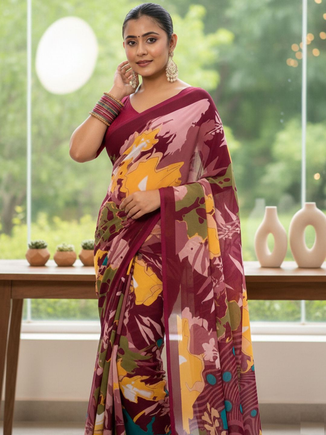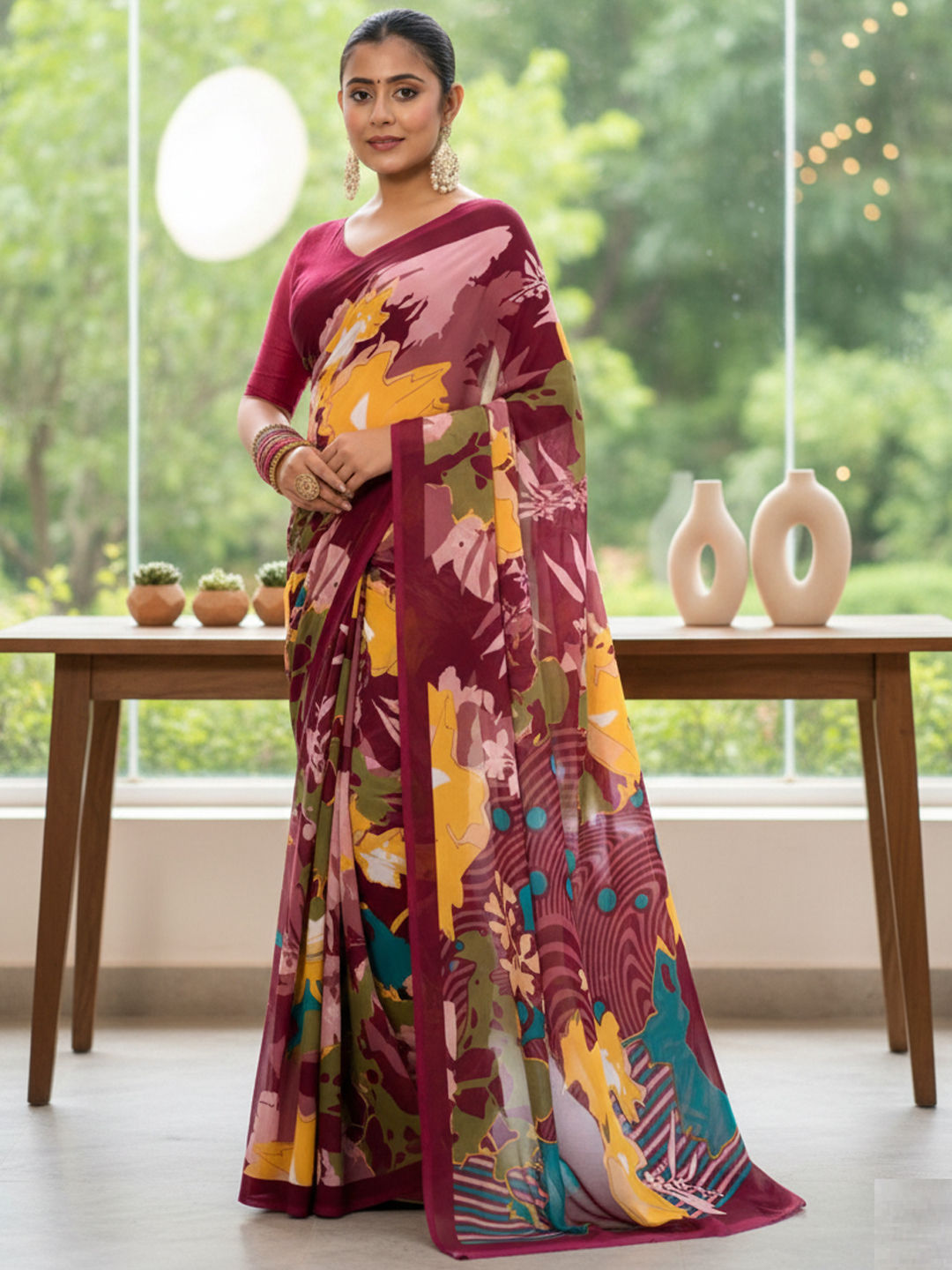 Multicolor color Saree in Georgette fabric with Floral, Printed work