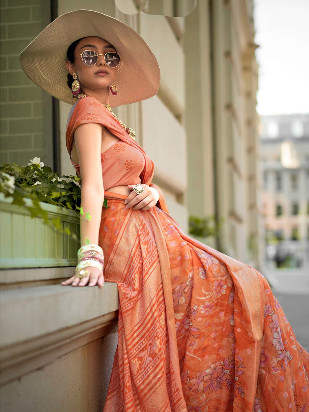 Orange color Saree in Georgette fabric with Floral, Printed work