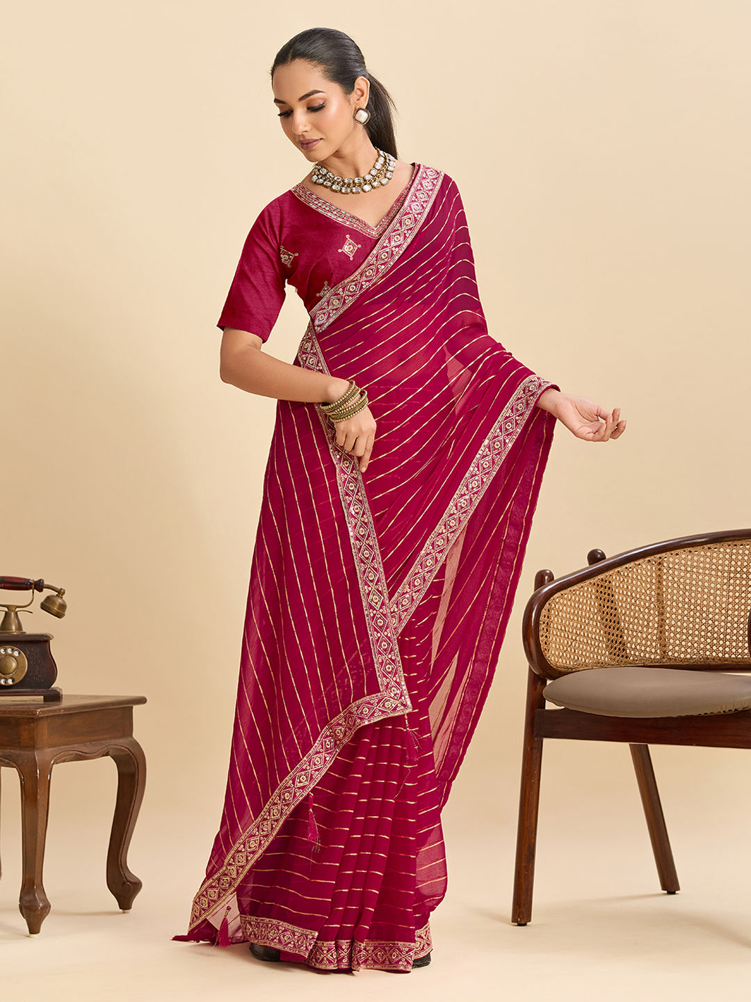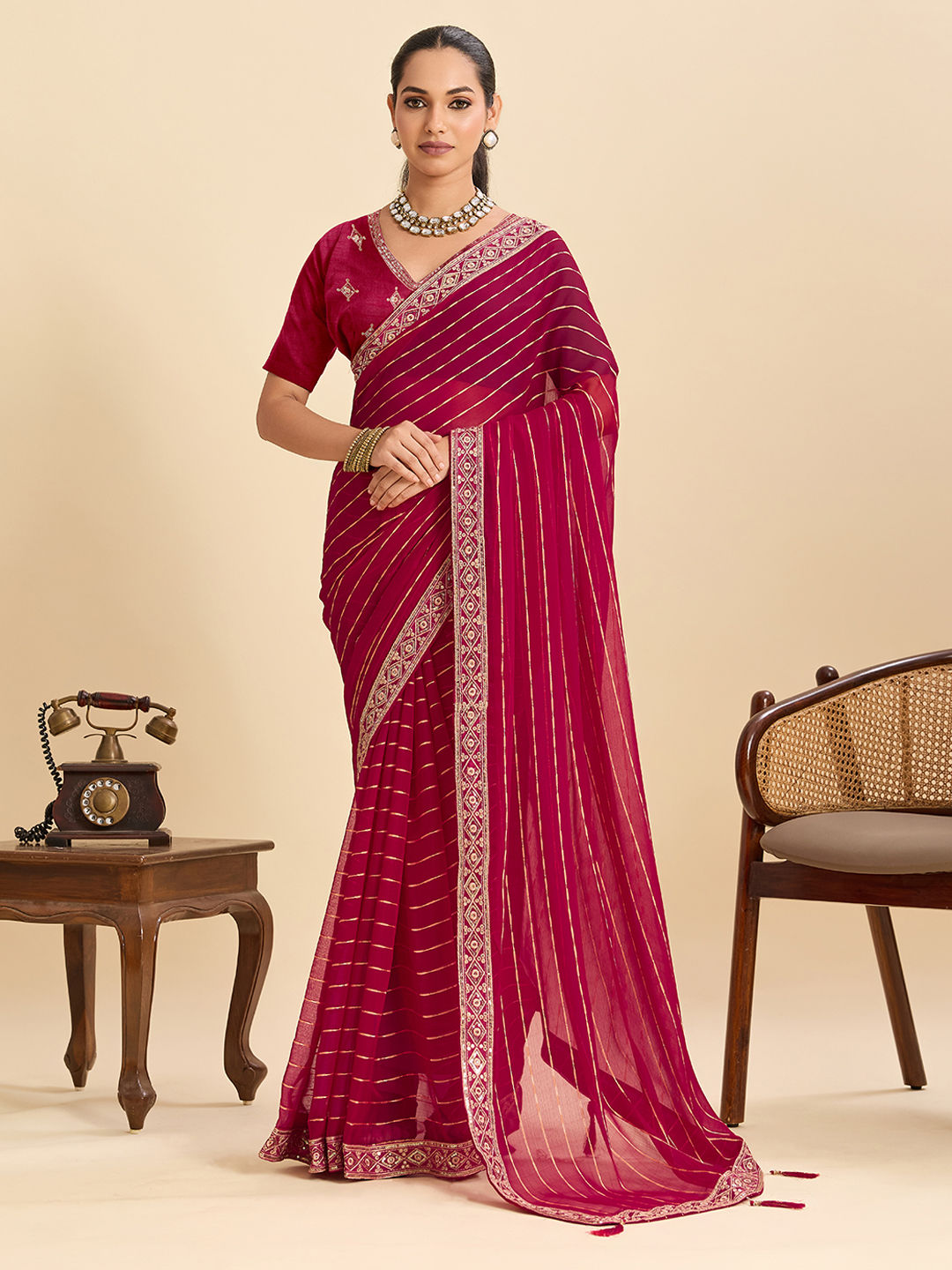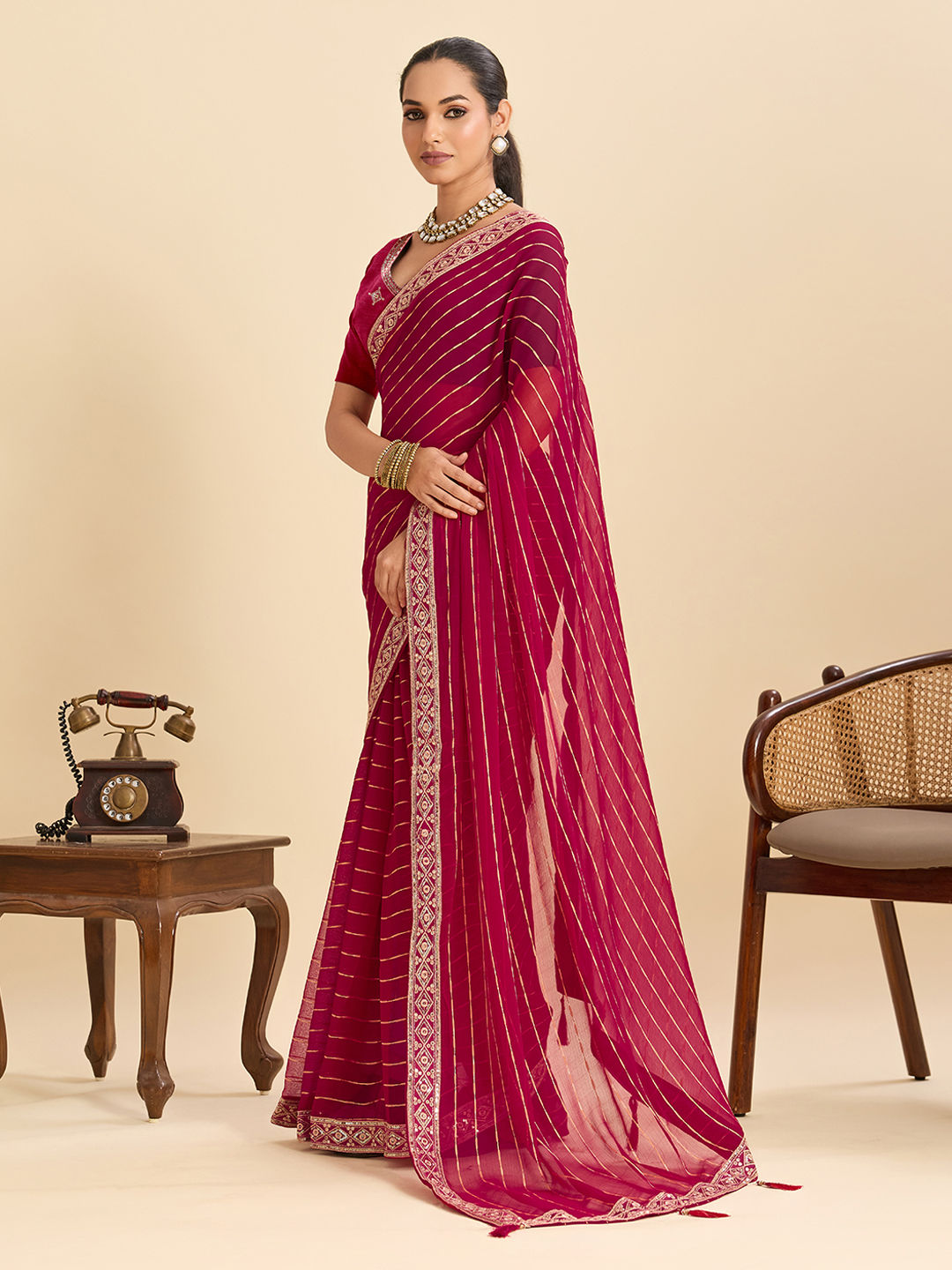 Georgette Party Wear Saree in Pink and Majenta with Sequence work