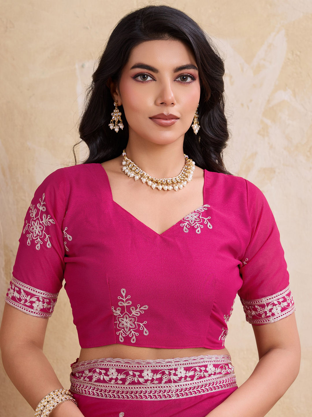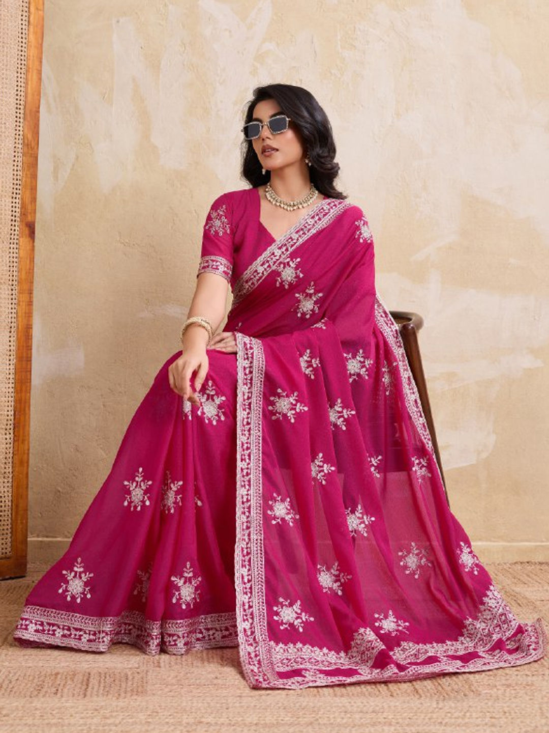 Georgette Party Wear Saree in Pink and Majenta with Thread work