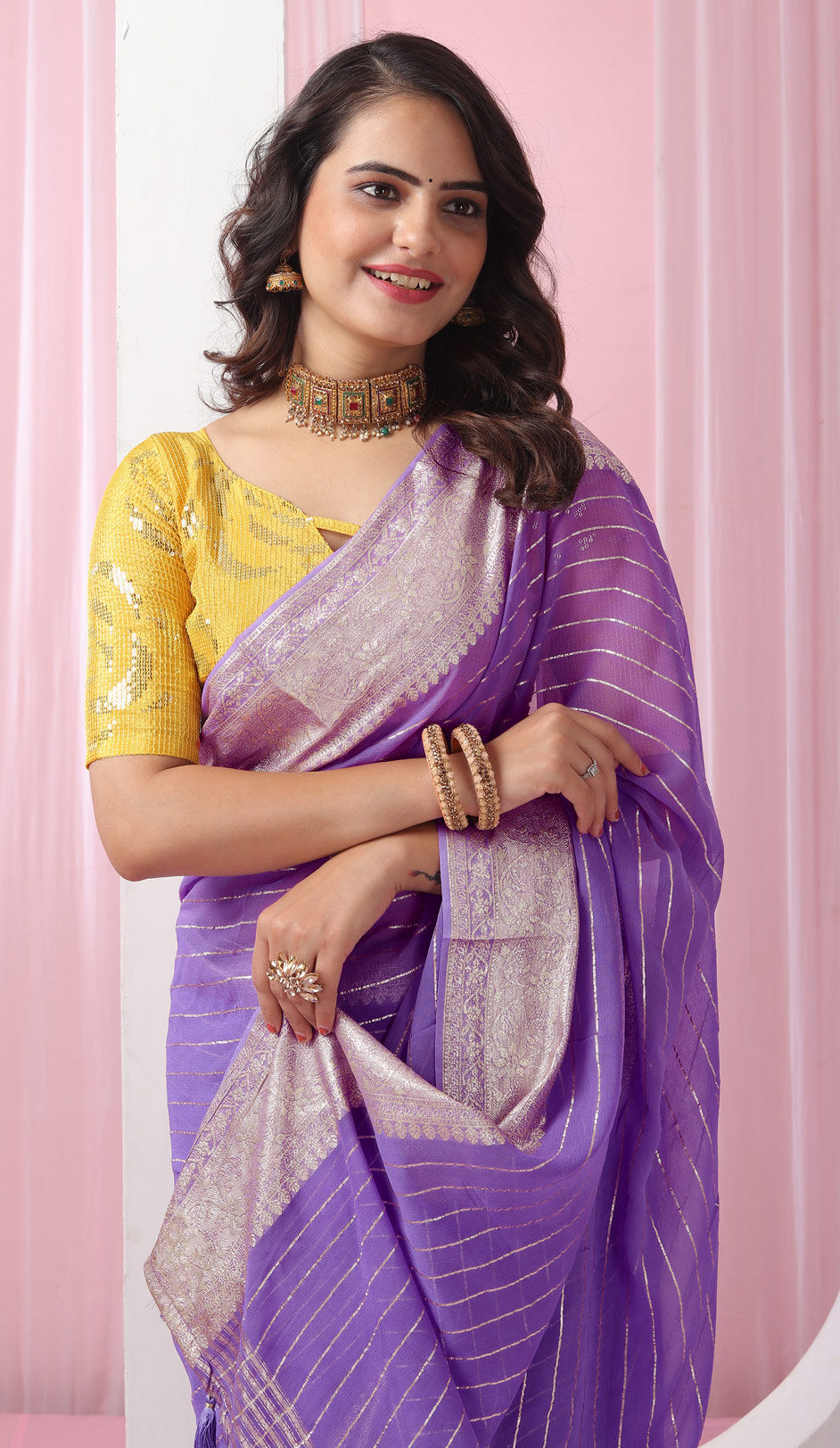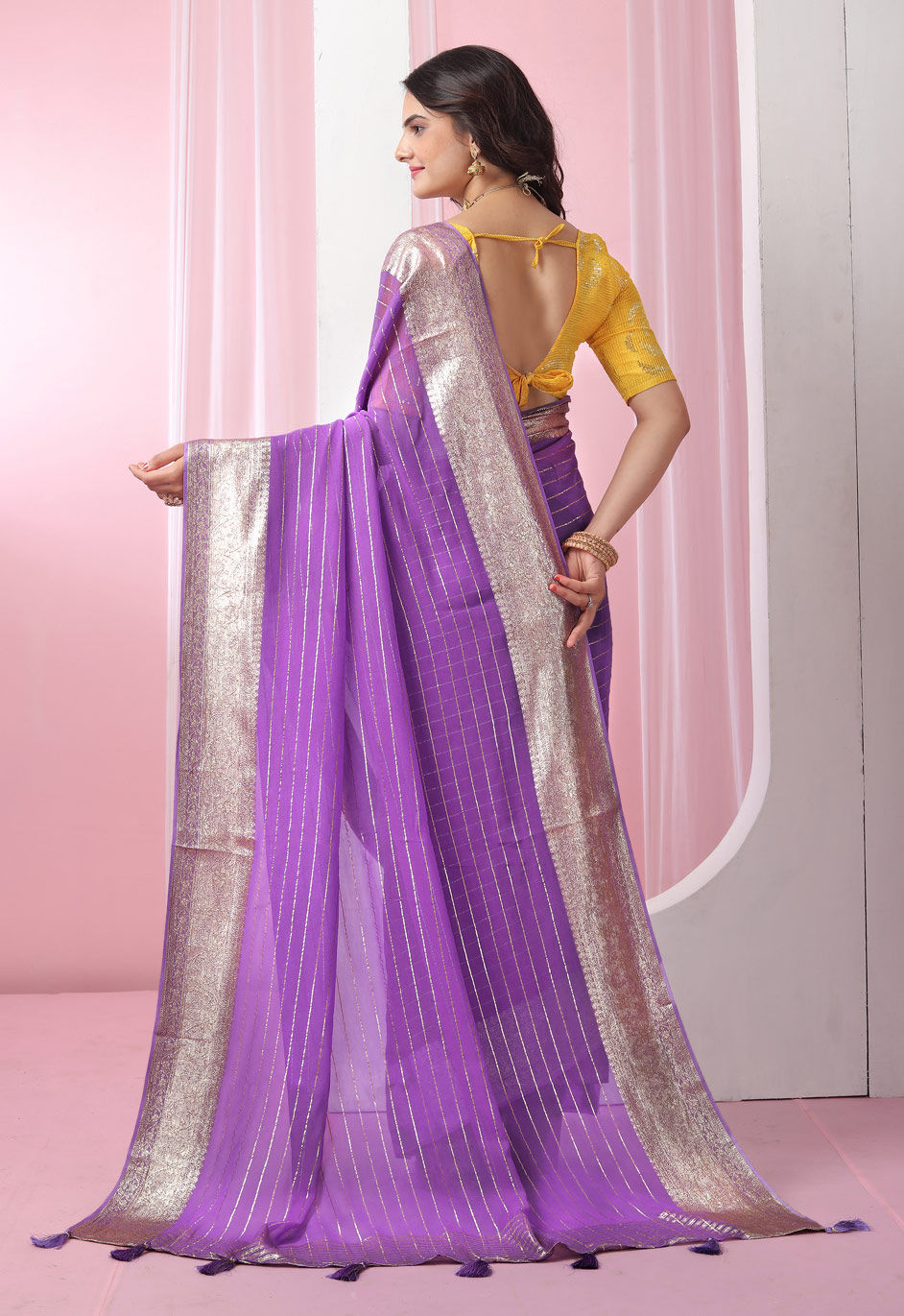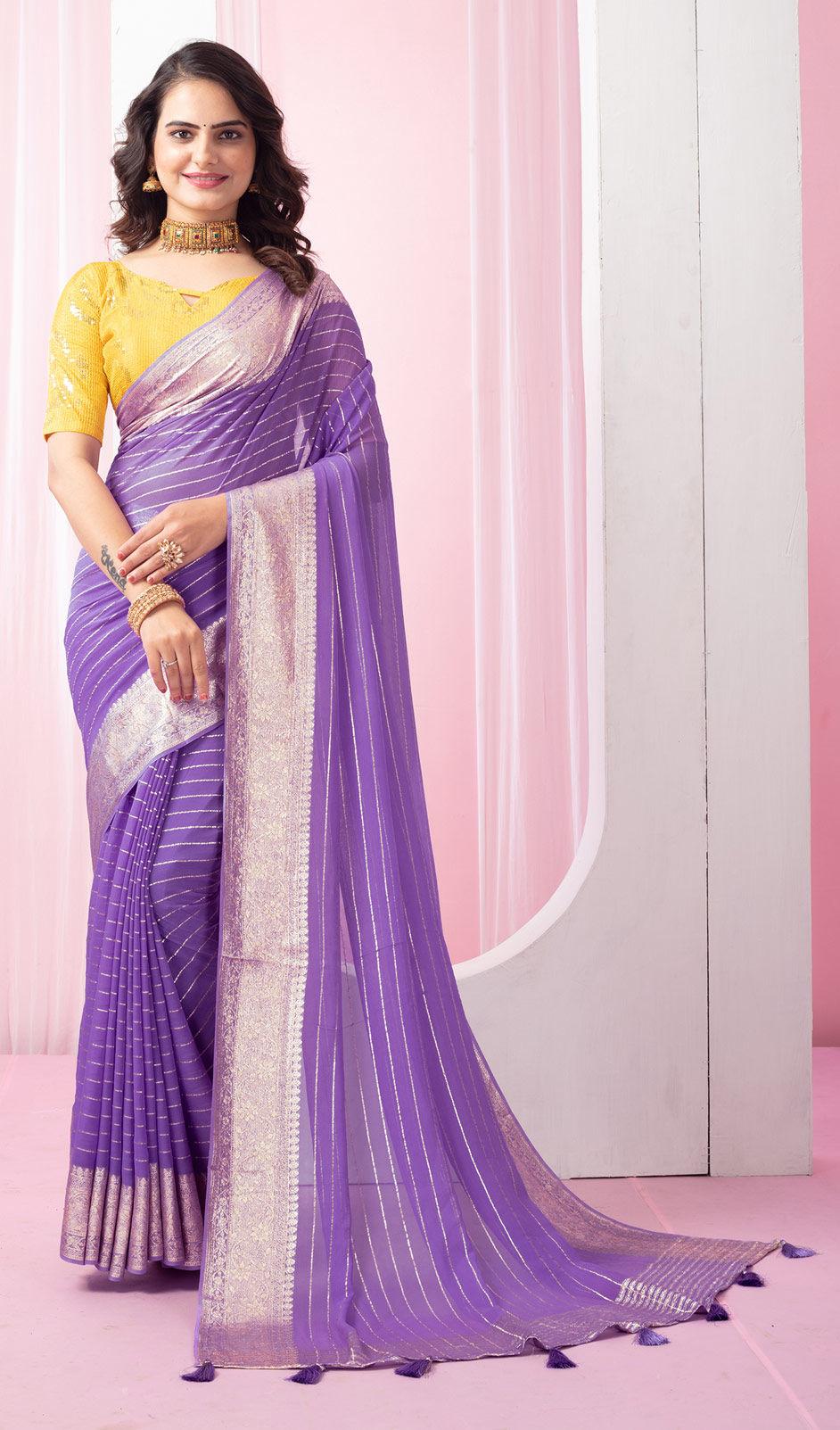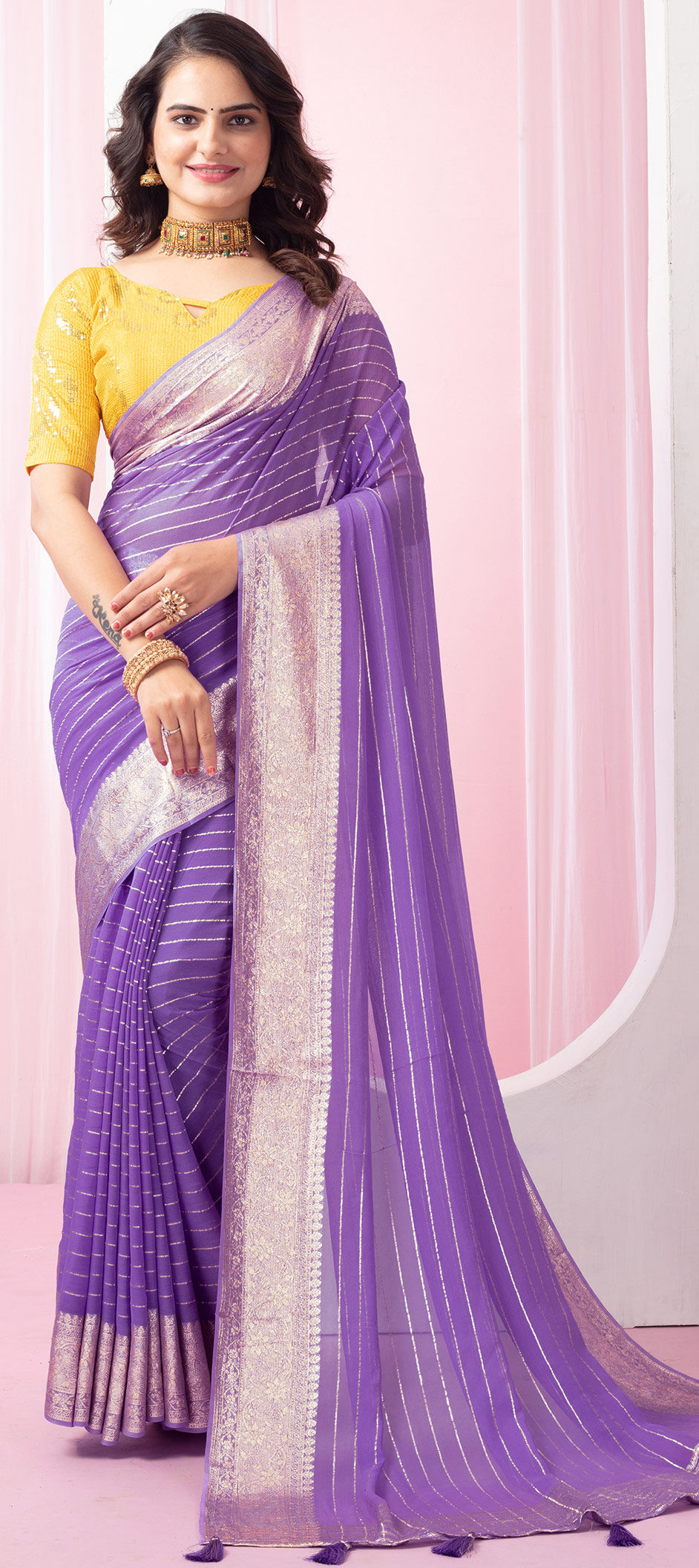 Purple and Violet color Saree in Georgette fabric with Sequence, Weaving, Zari work