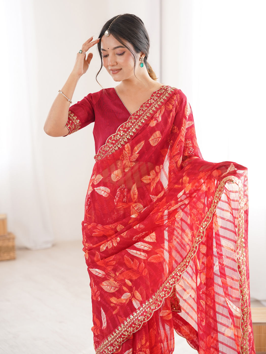 in Red and Maroon with Embroidered work