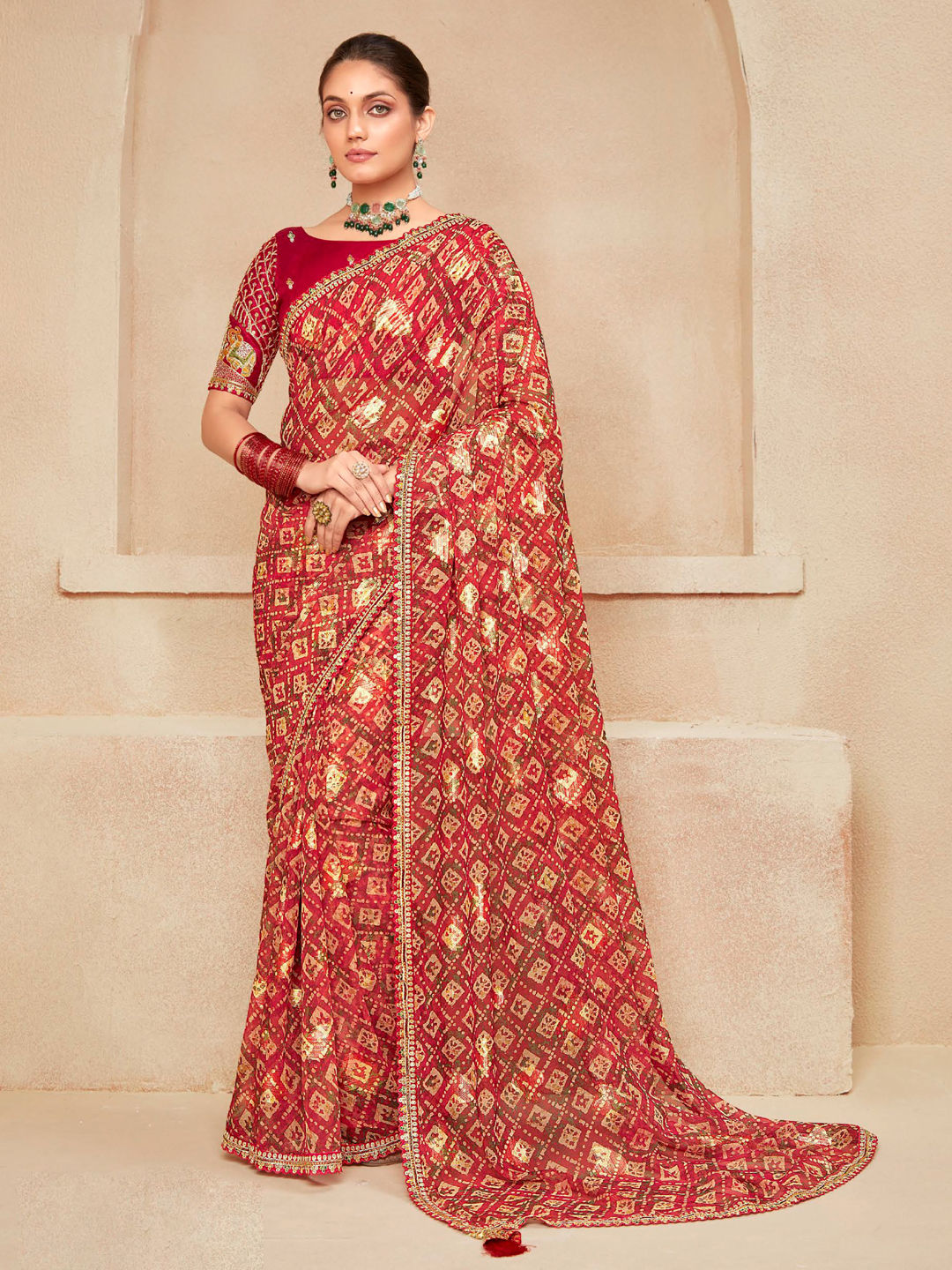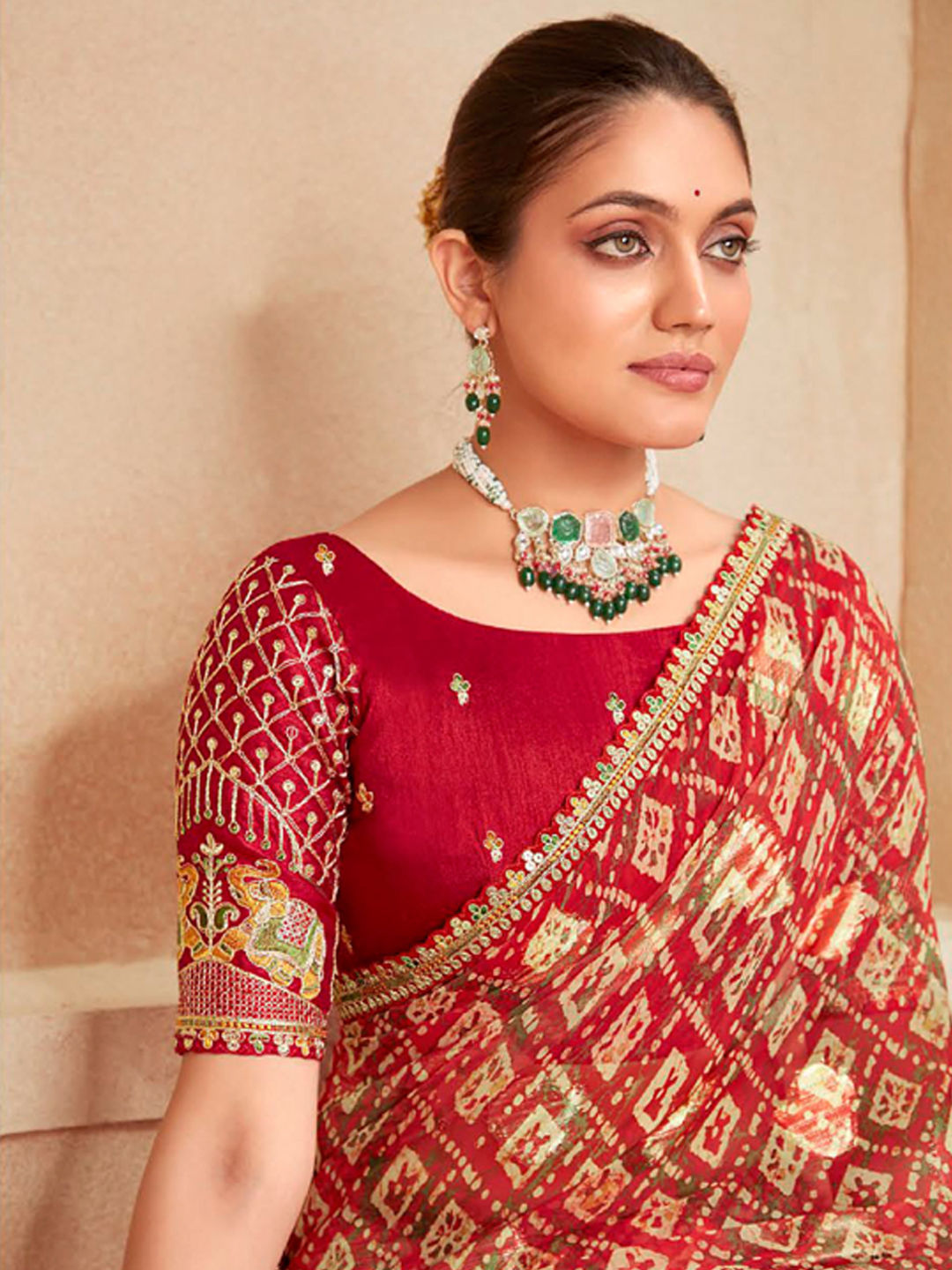 in Red and Maroon with Printed work