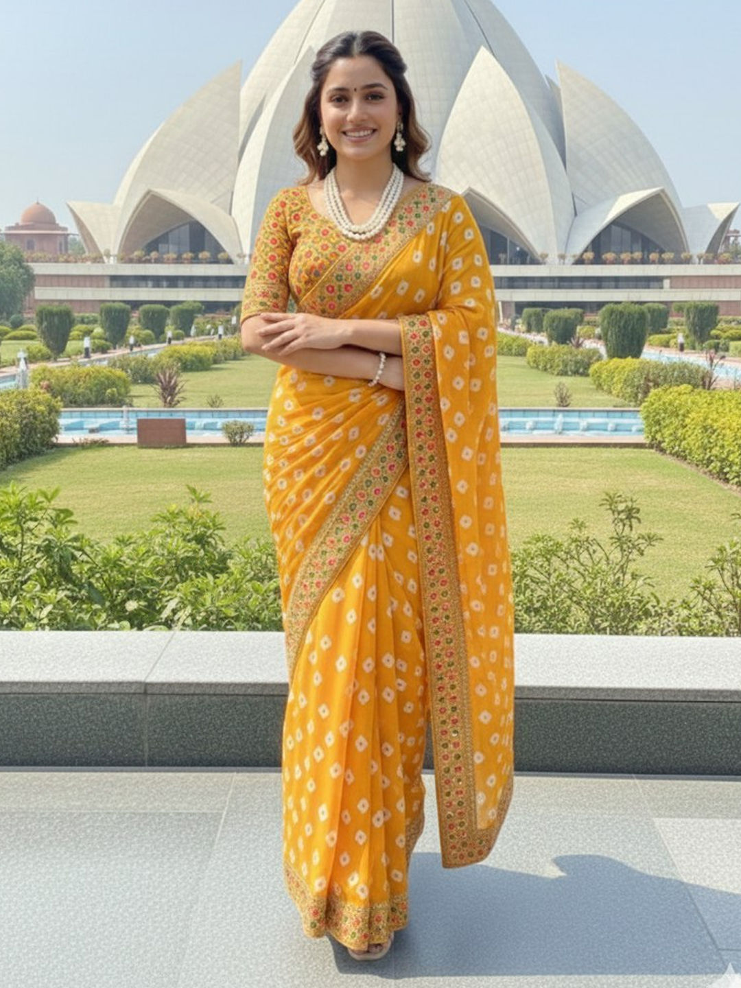 in Yellow with Embroidered work