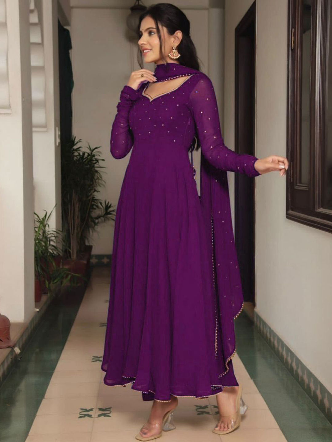 Purple and Violet color Gown in Georgette fabric with Sequence work