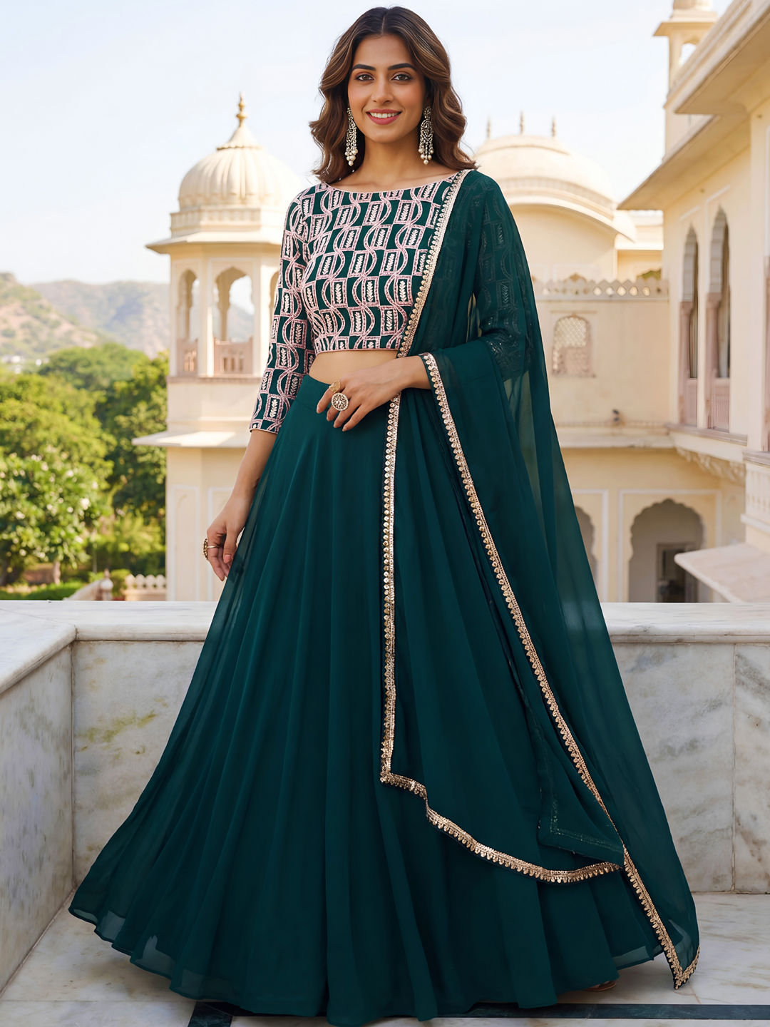 Green color Lehenga in Georgette fabric with Embroidered, Sequence, Thread, Zari work