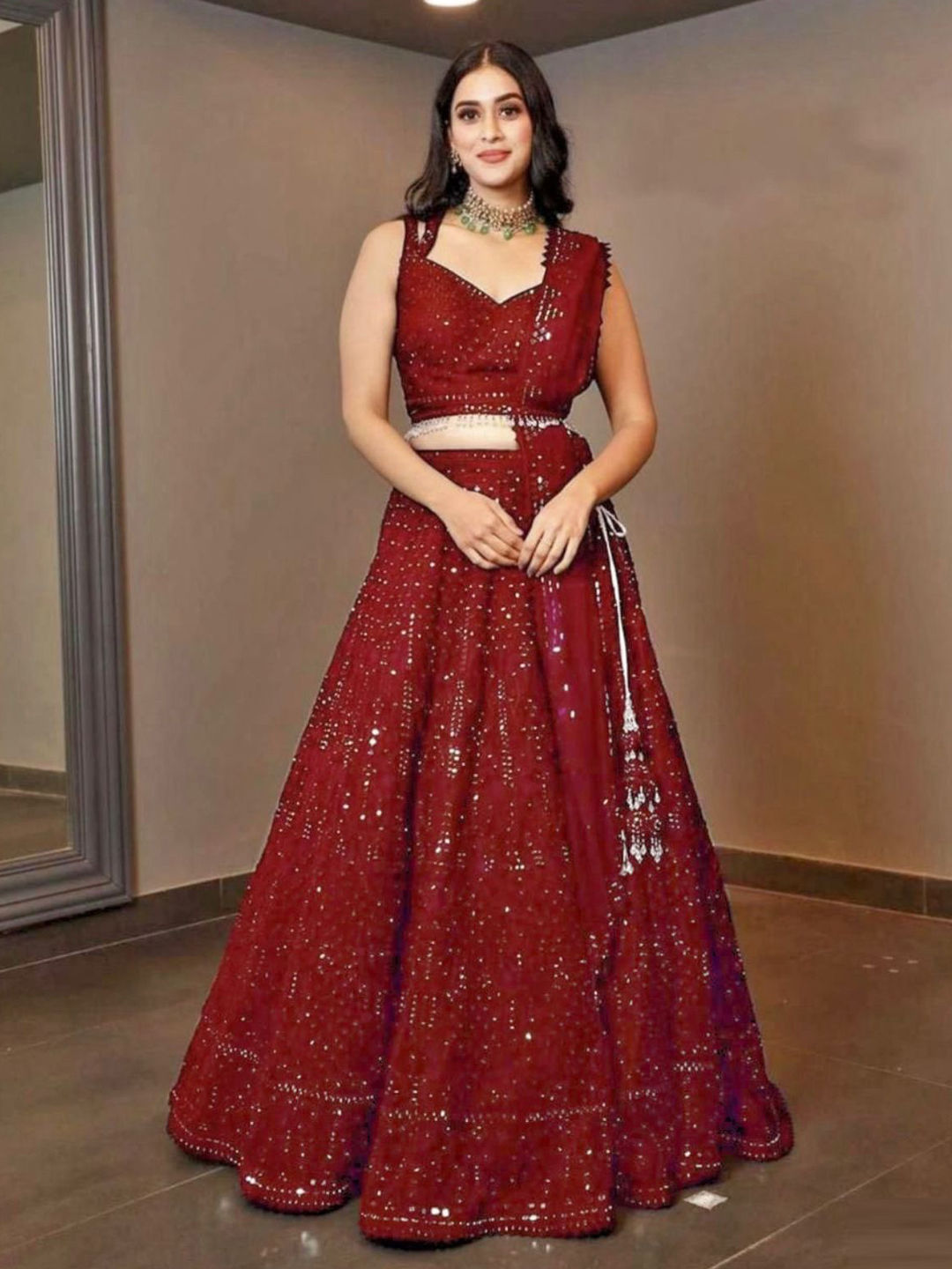Red and Maroon color Lehenga in Georgette fabric with Embroidered, Sequence work