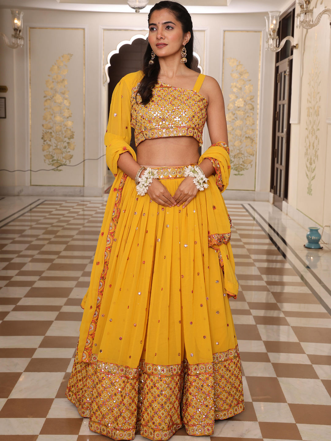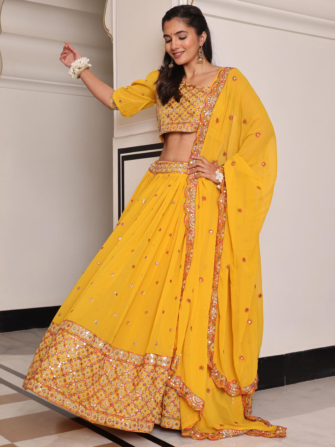 Yellow color Lehenga in Georgette fabric with Embroidered work
