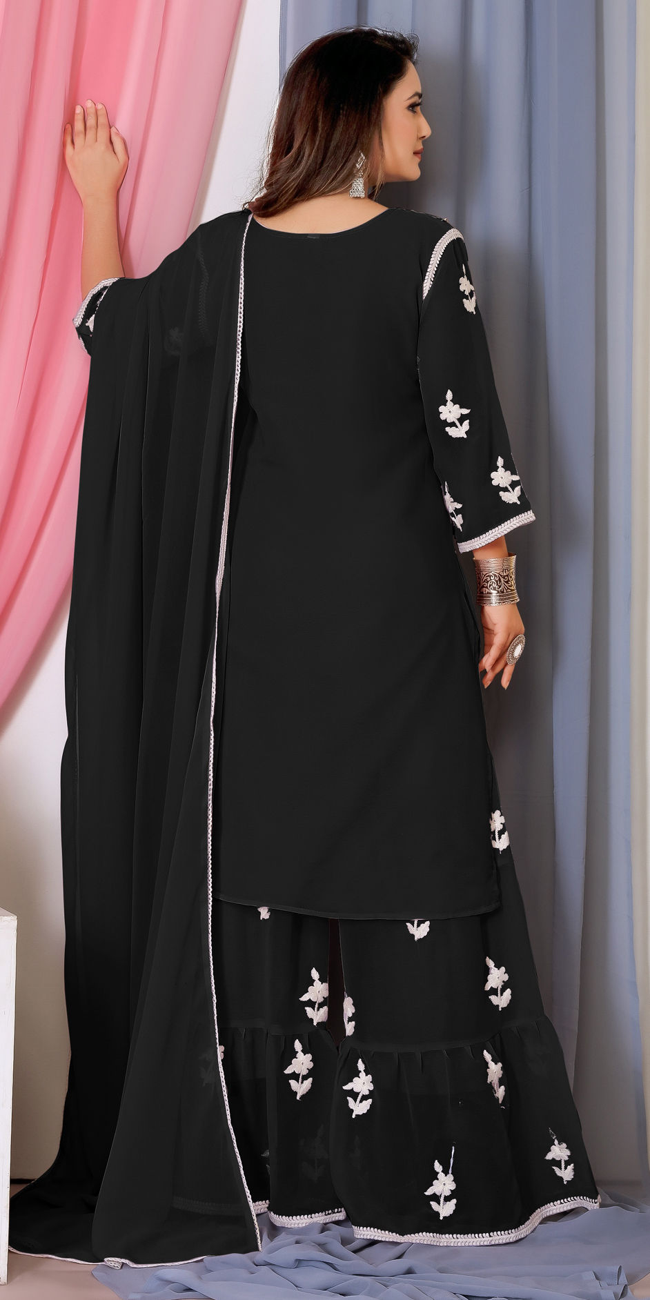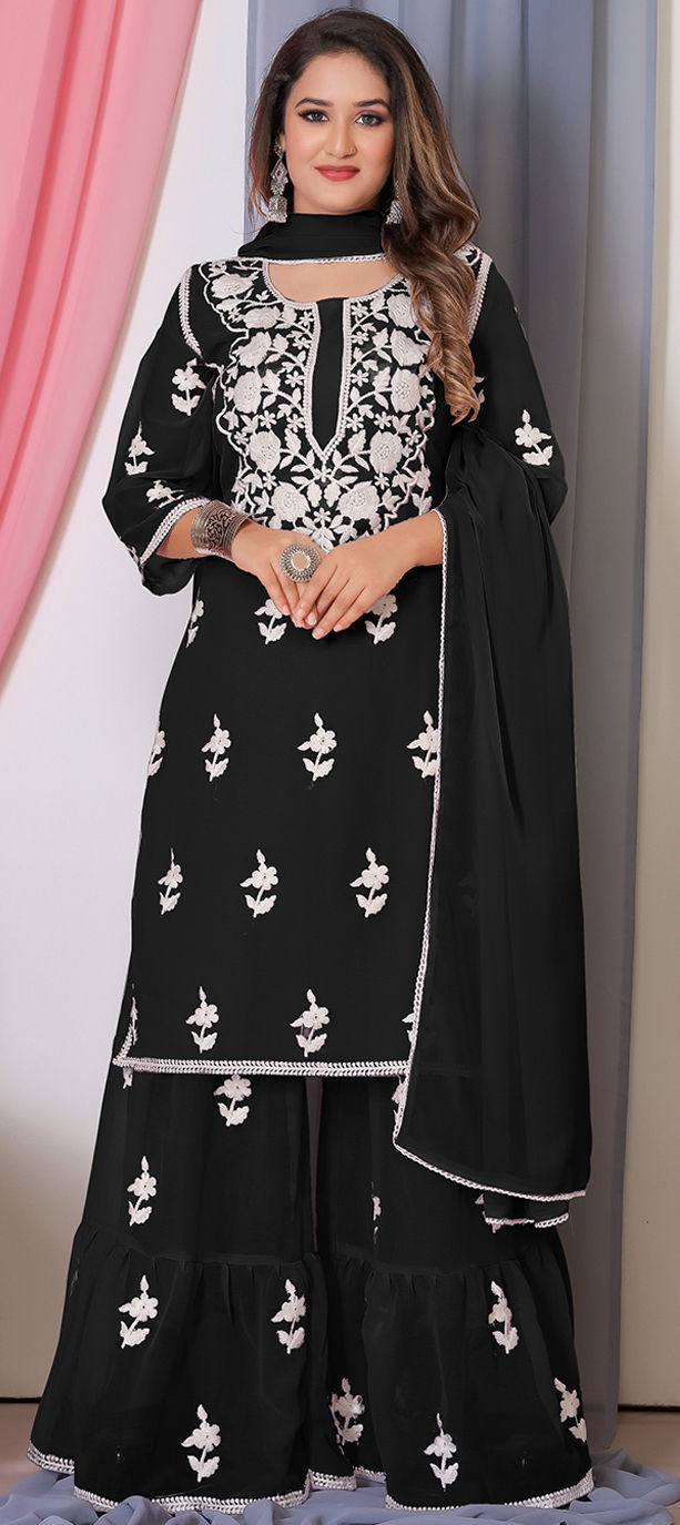 Black and Grey color Salwar Kameez in Georgette fabric with Embroidered, Thread work