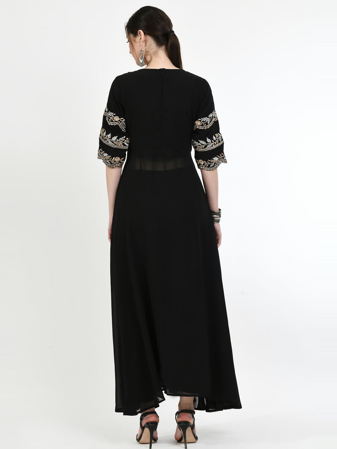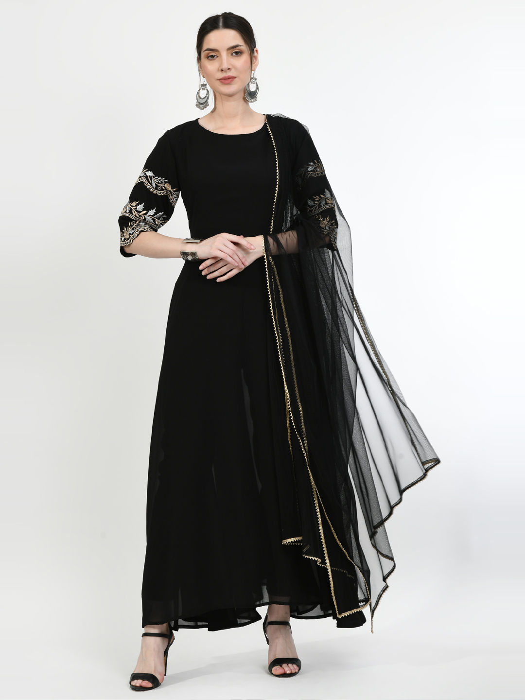 Black and Grey color Salwar Kameez in Georgette fabric with Embroidered, Thread work
