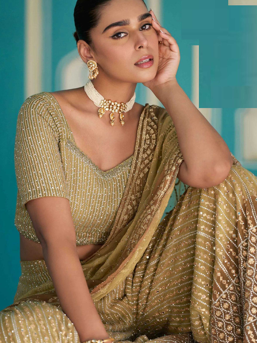 Georgette Reception Salwar Kameez in Green with Sequence work