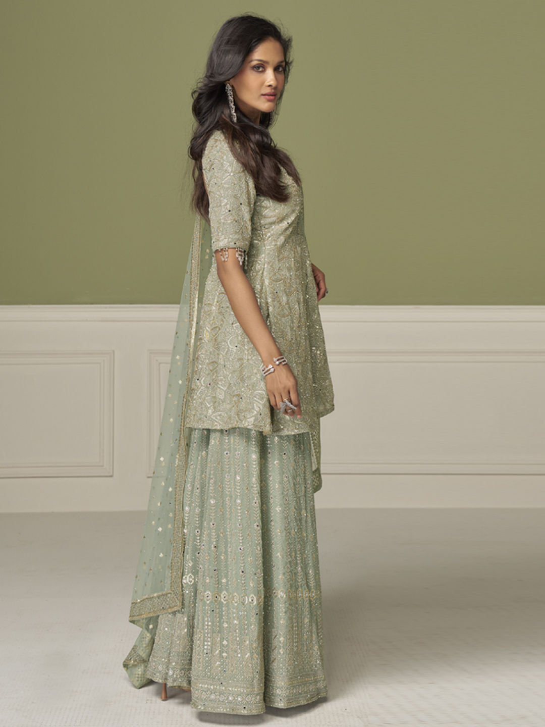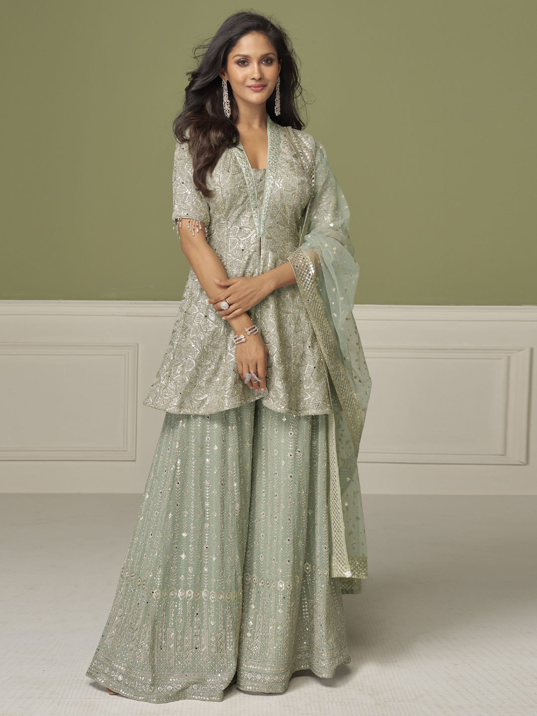 Green color Salwar Kameez in Georgette fabric with Embroidered, Sequence, Thread work