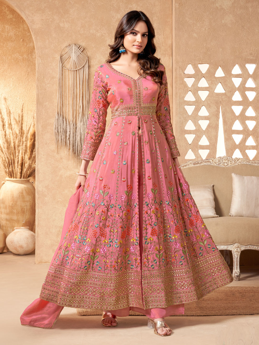 Silk Festive Salwar Kameez in Pink and Majenta with Sequence work