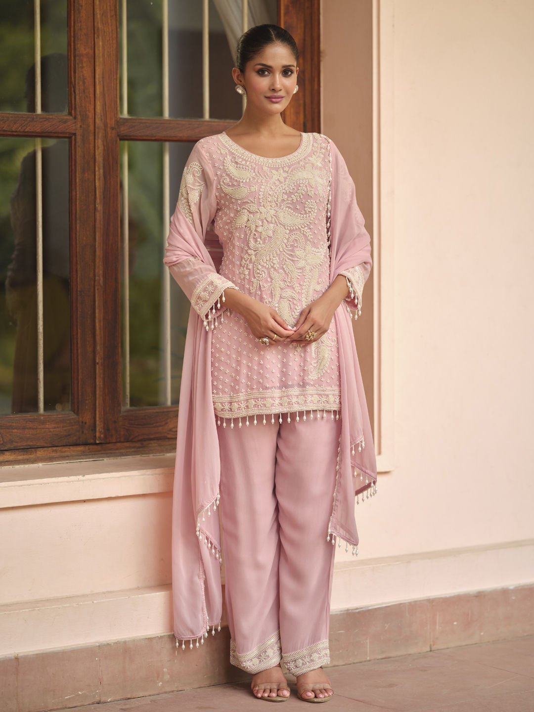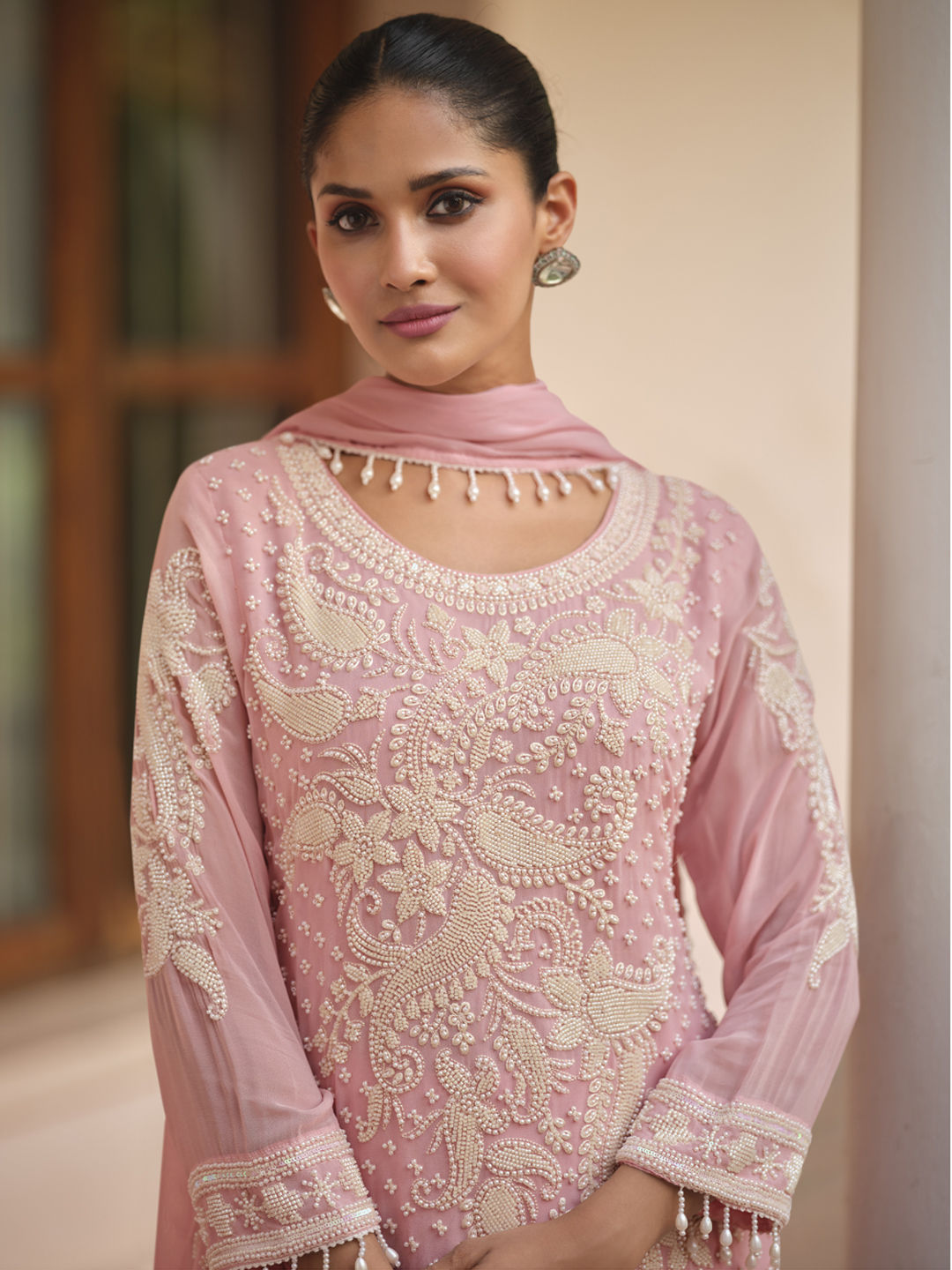 Pink and Majenta color Salwar Kameez in Georgette fabric with Moti, Sequence work