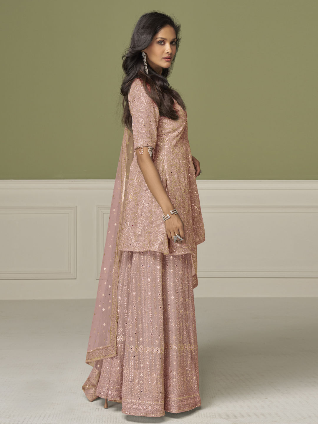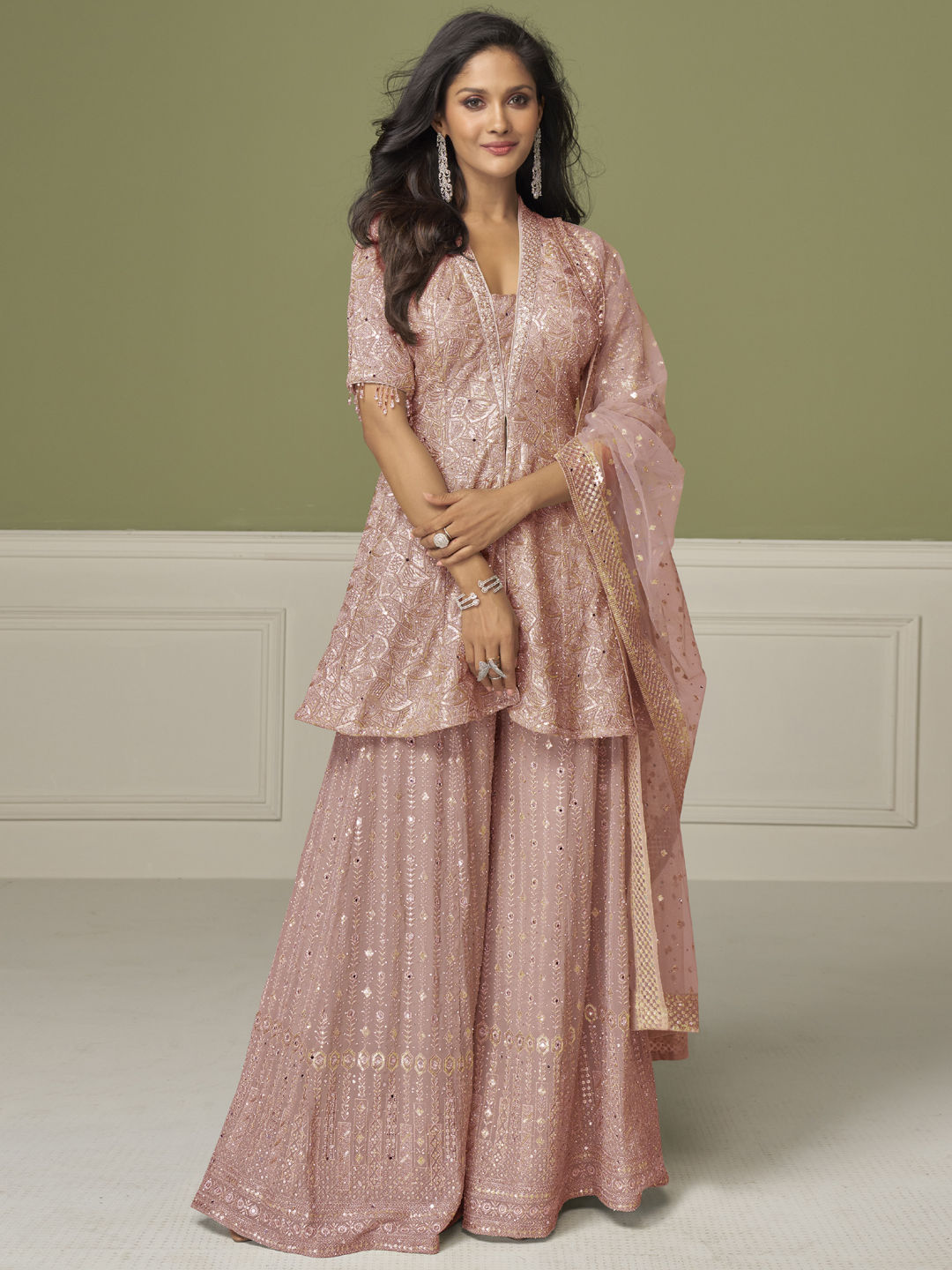 Pink and Majenta color Salwar Kameez in Georgette fabric with Embroidered, Sequence, Thread work