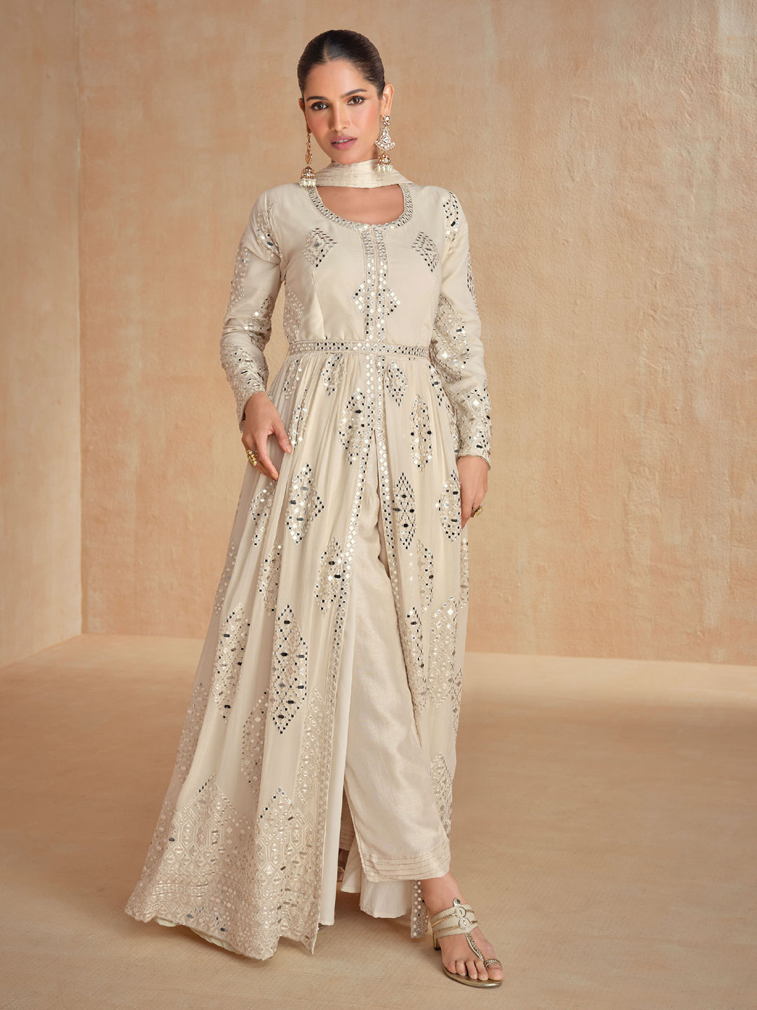in White and Off White with Mirror work