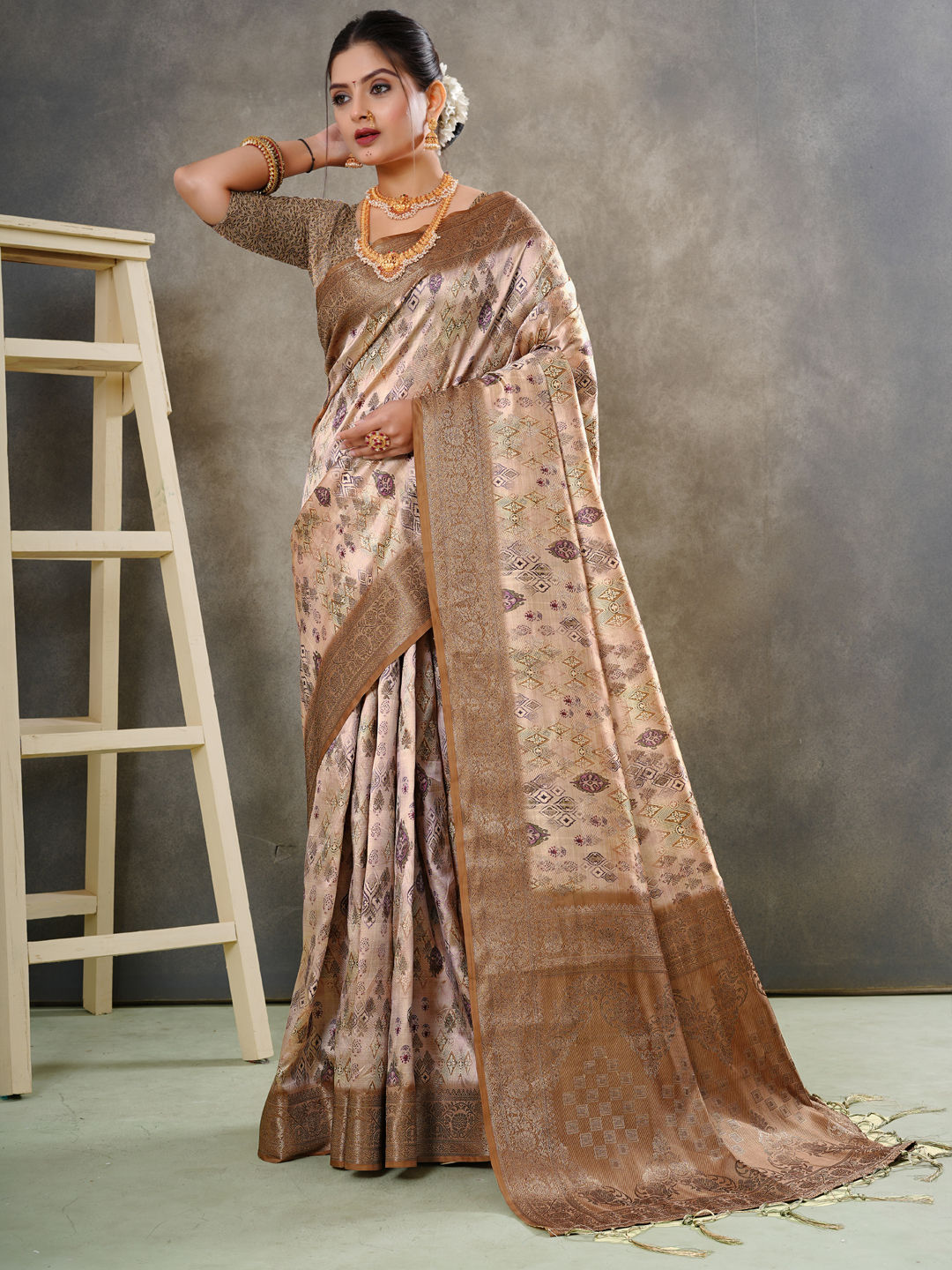 Beige and Brown color Saree in Georgette fabric with Weaving, Zari work