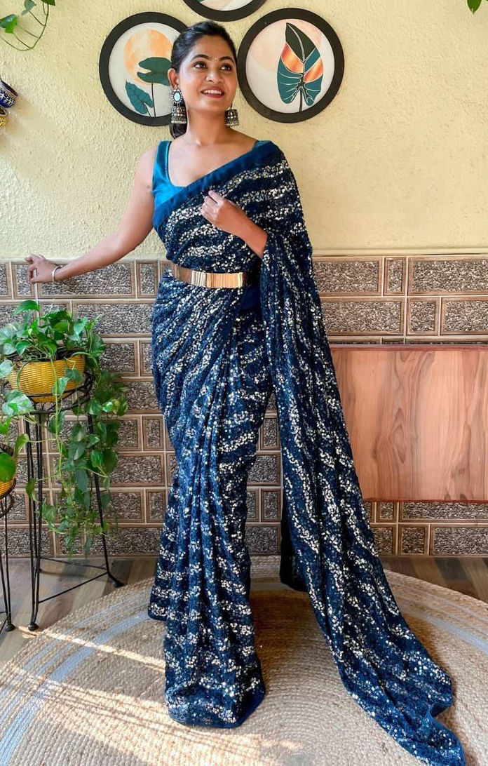Blue color Saree in Georgette fabric with Sequence work
