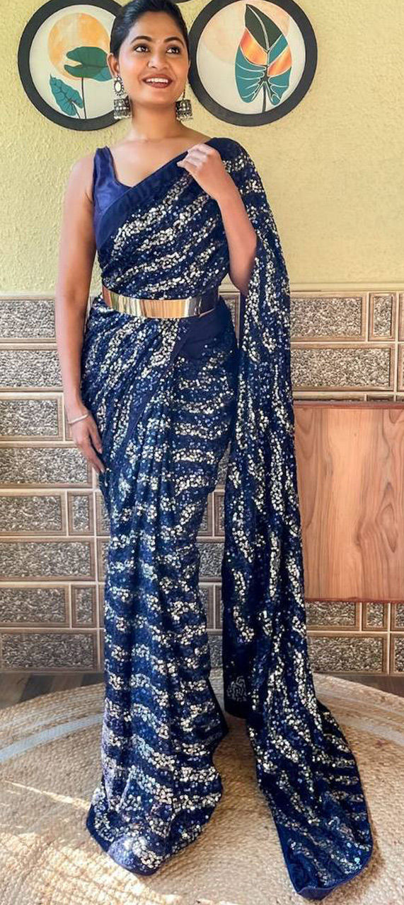 Blue color Saree in Georgette fabric with Sequence work